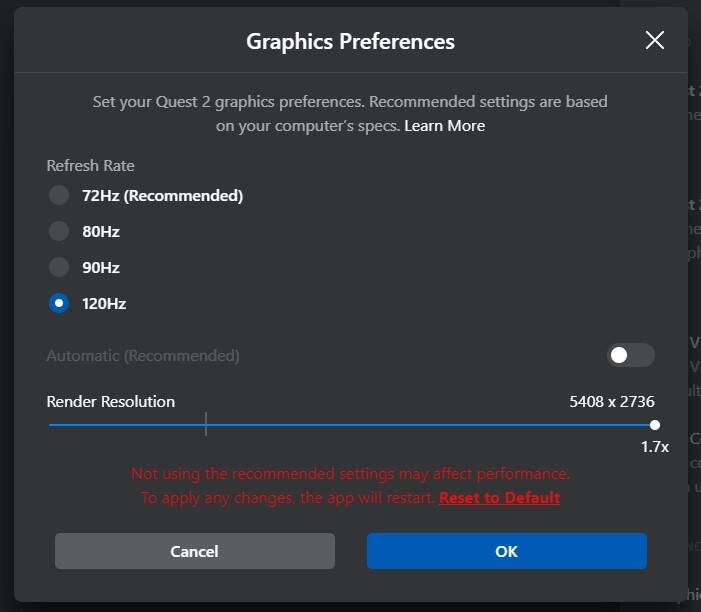 - You should see 120 FPS on the Oculus Mirror window, if not check Oculus app again
