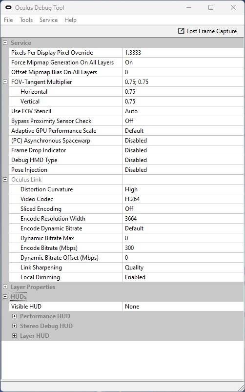 - Run Oculus Debug Tool and set the following values (also if already present):