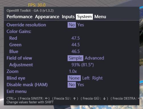 These options must be modified when simulator is in VR mode. VR mode must be restarted after that some options are changed so it is better to close and re-open the simulator and restart the headset. You can use OculusMirror.bat without put the Quest 2 on your head.