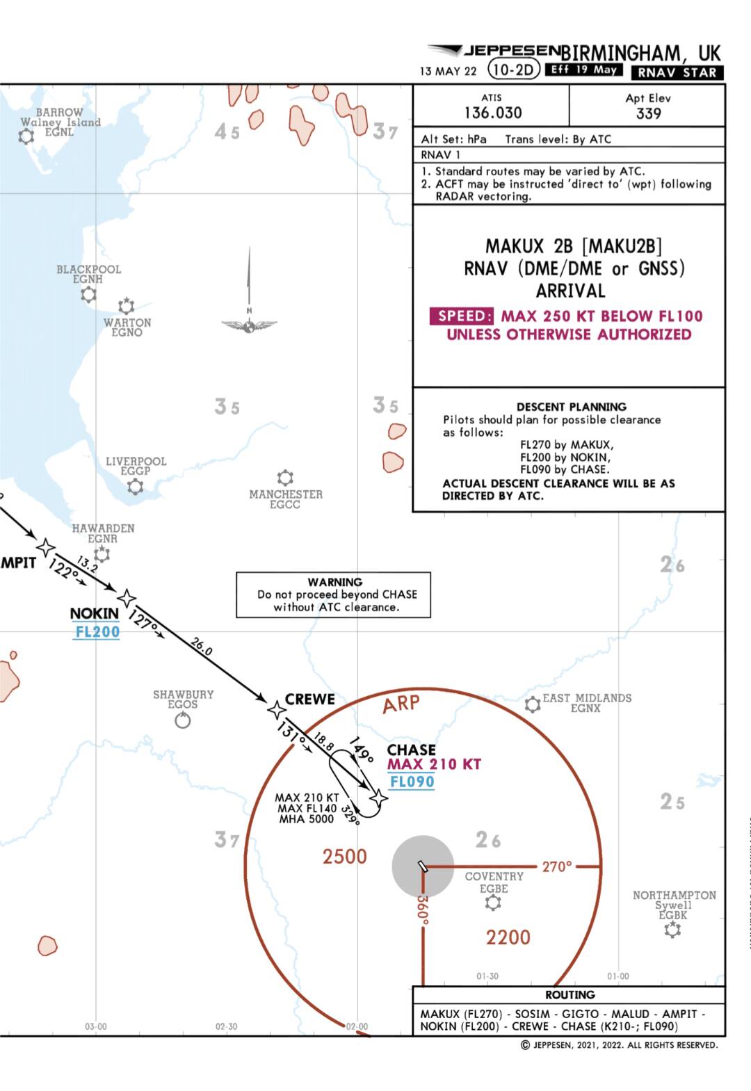 Looking at the Makux2b STAR for EGBB you have waypoint CHASE with an at 9000ft constraint. This is also where a hold is with an above 5000/below FL140 constraint. So when you approach this what height can you overfly CHASE to enter the hold?