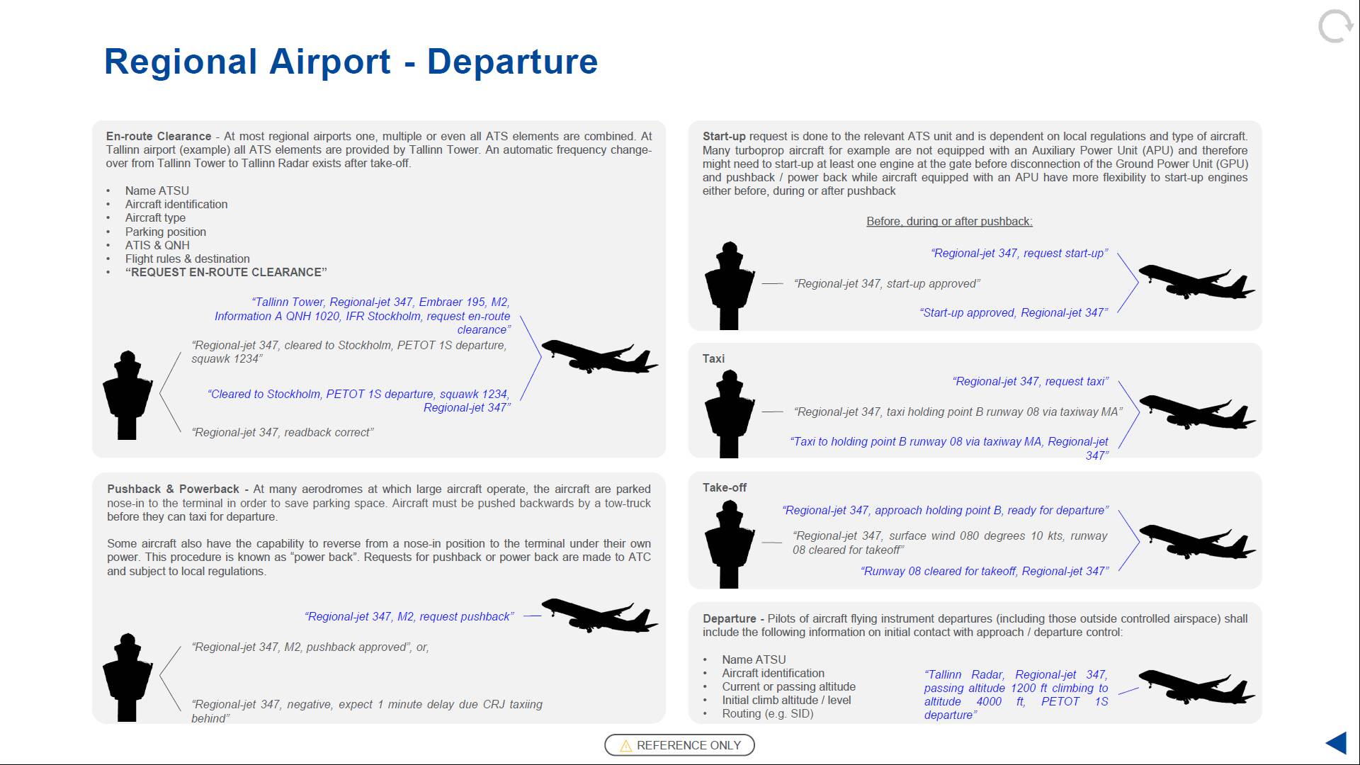 Are we talking FAA or ICAO? FAA deviates significantly from standard ICAO phraseology and is one of the only countries in the world to do so unfortunately.