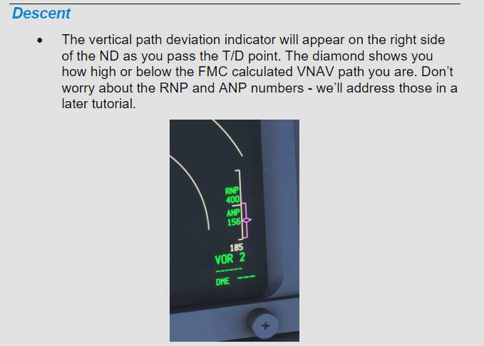 It tells you if you are on descend profile. It should activate once you start your descend from cruise level. See page 60 in the PMDG_737_MSFS_Tutorial.pdf