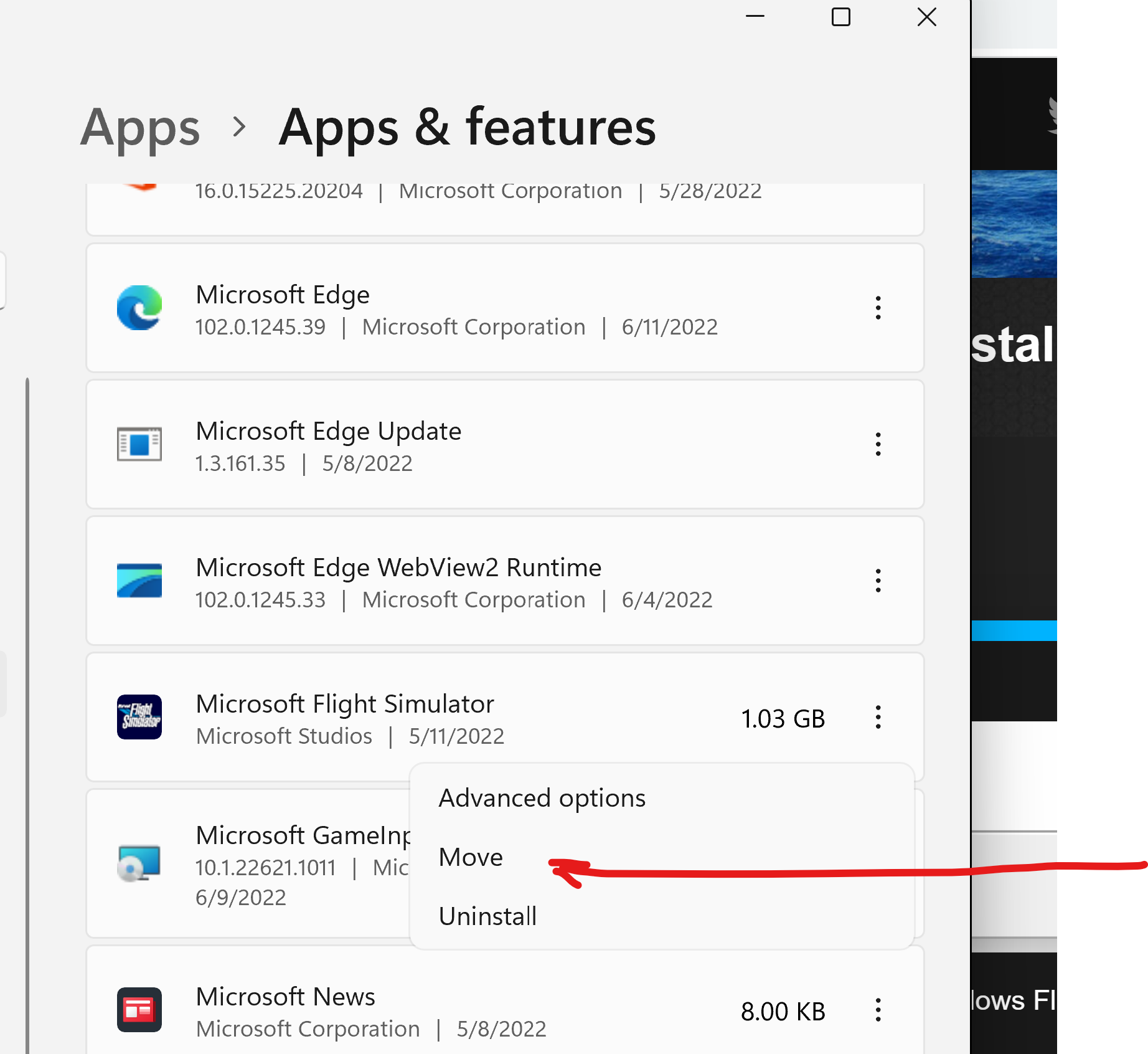 After this you can use the Windows Flight Simulator APP “Move” Commamd to move