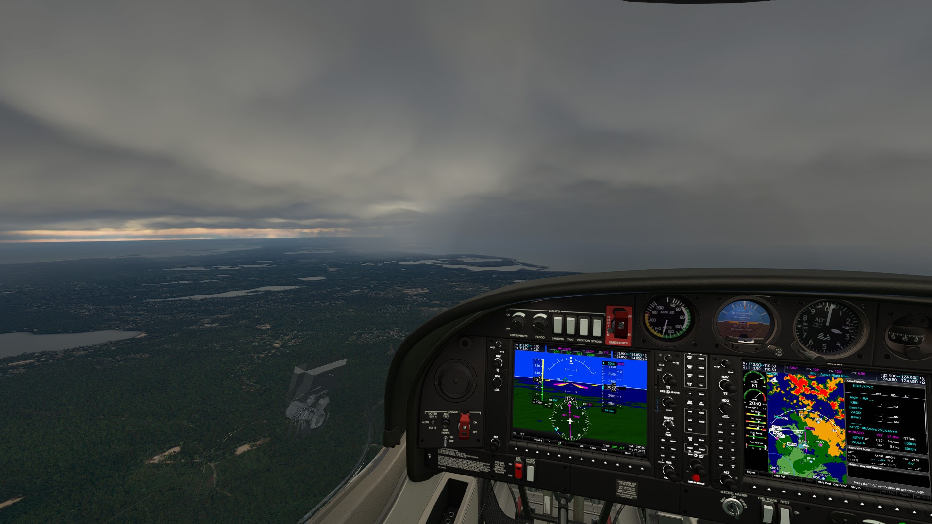 This is a perfect example. You can see on the NEXRAD and look out the canopy and confirm - that Yellow Cell is exactly offshore and I’m flying into it - you can’t even see anything beyond it- no horizon, nothing. It’s working.