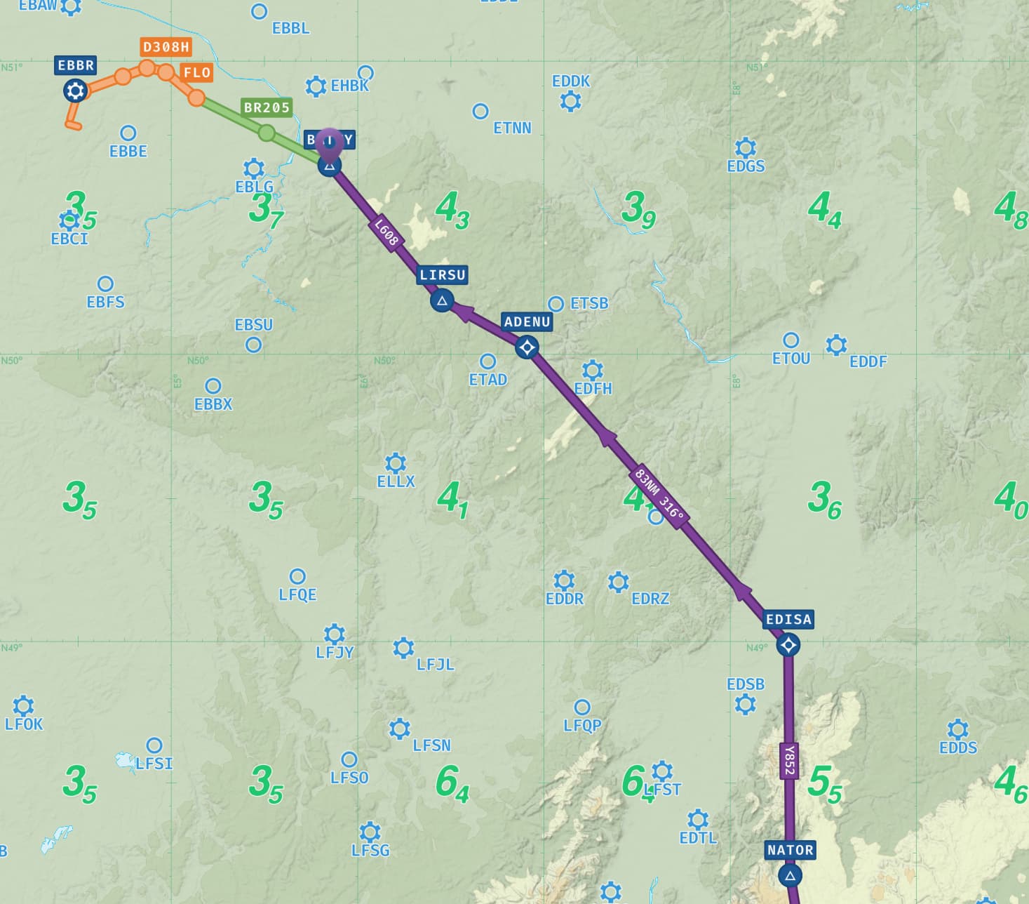 Finally went to EBLG (Airport) where I reached the CRZ and managed to complete the flight with no further issues.