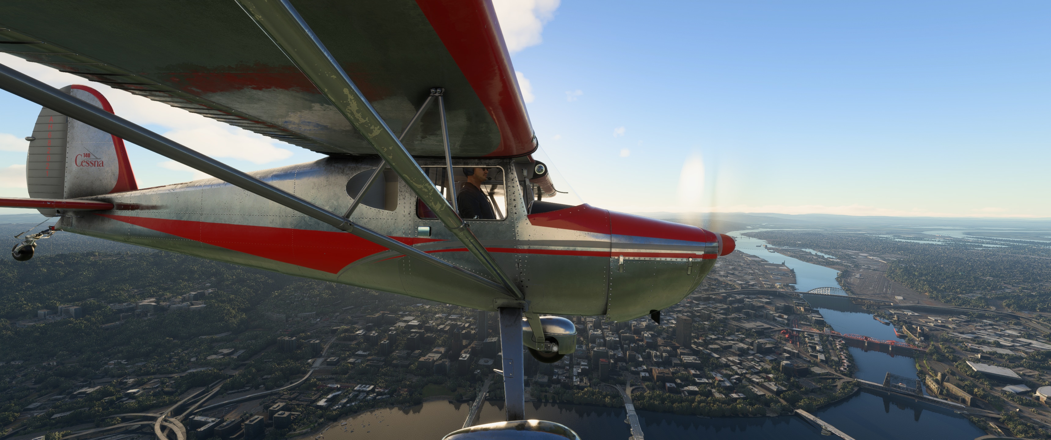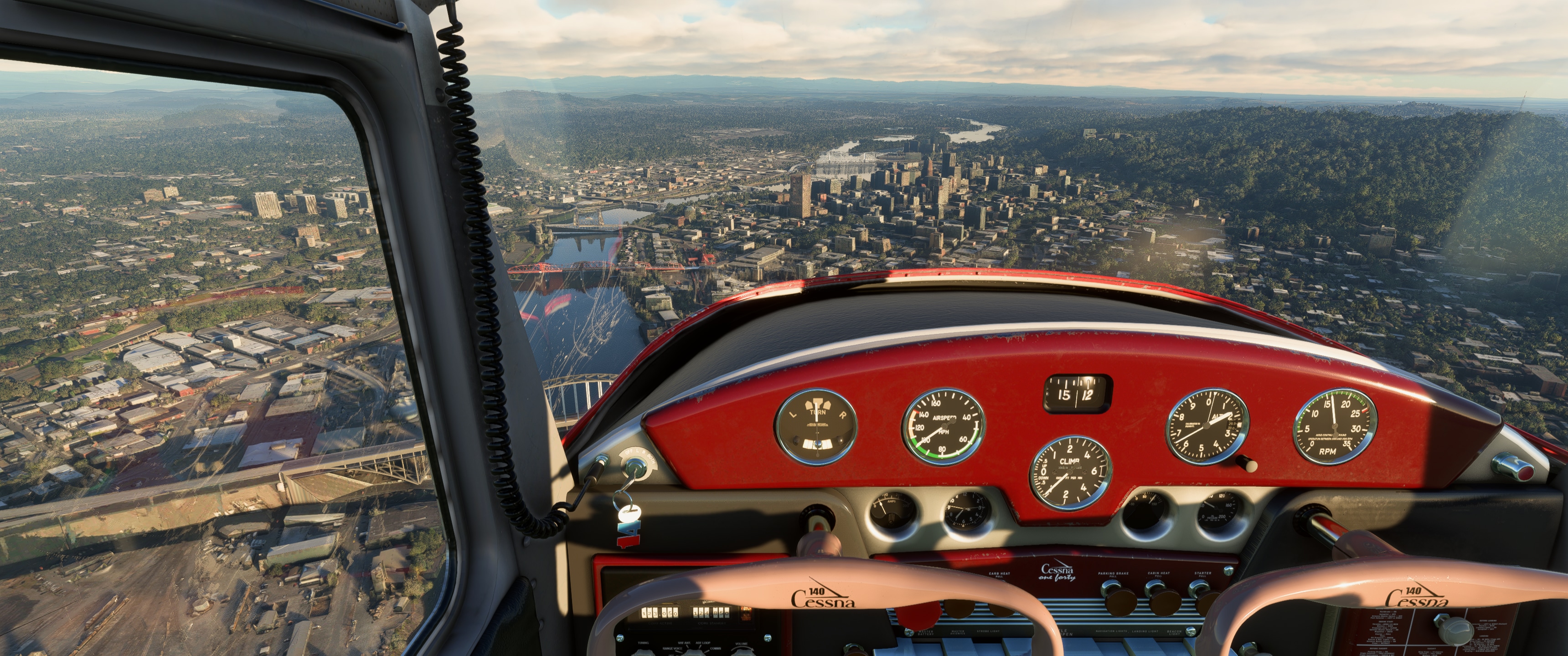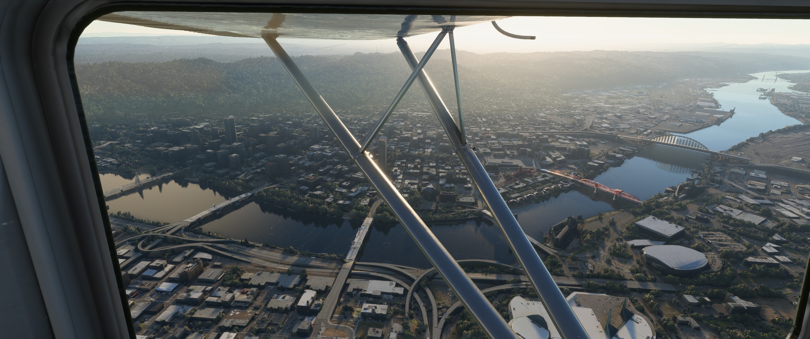 Took the Cessna 140 for a spin around Portland yesterday evening (with Portland bridges mod & We Love VFR region 2):