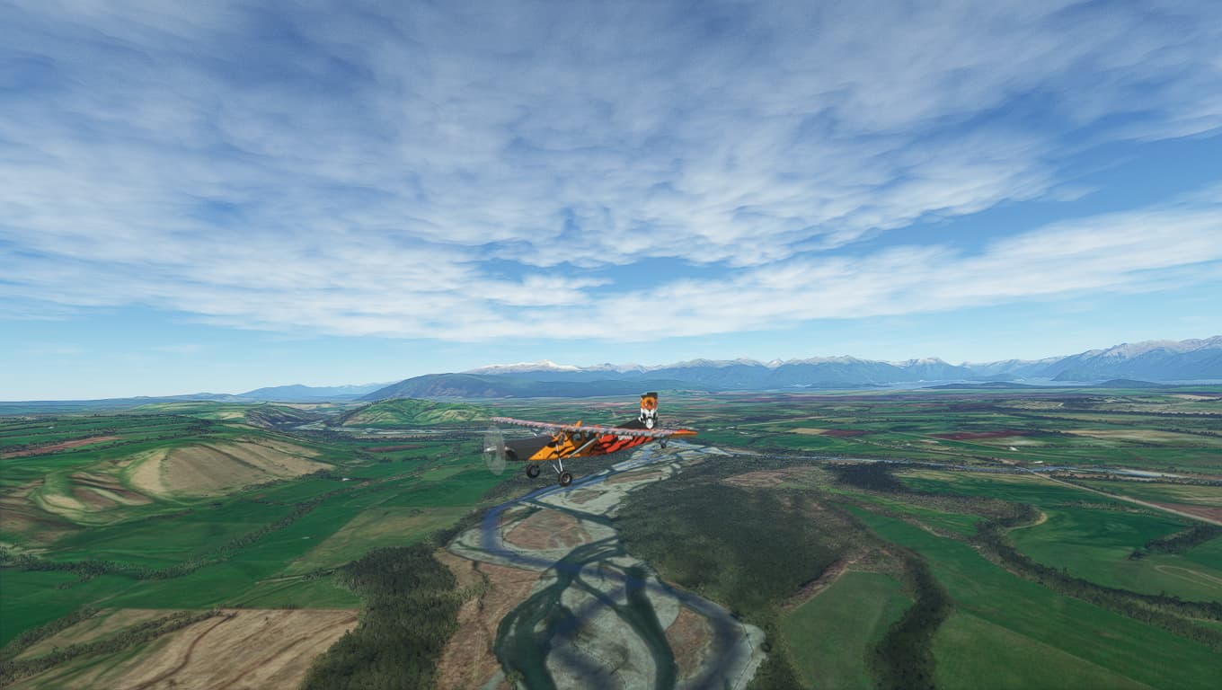 Peaceful flight following Clutha River / Mata-Au north through these small hills near Island Block, New Zealand