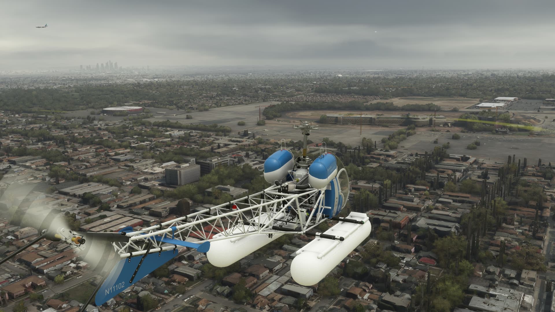 This week has been total May Gray, here in Los Angeles. I’ve also been having a reunion with the Bell 47, which was such a handful in earlier versions, I just fled to the H145. So much progress by the makers and Asobo have made getting back into the 47 a pleasure. Wish someone would make a Whirly Birds livery. Cheers!