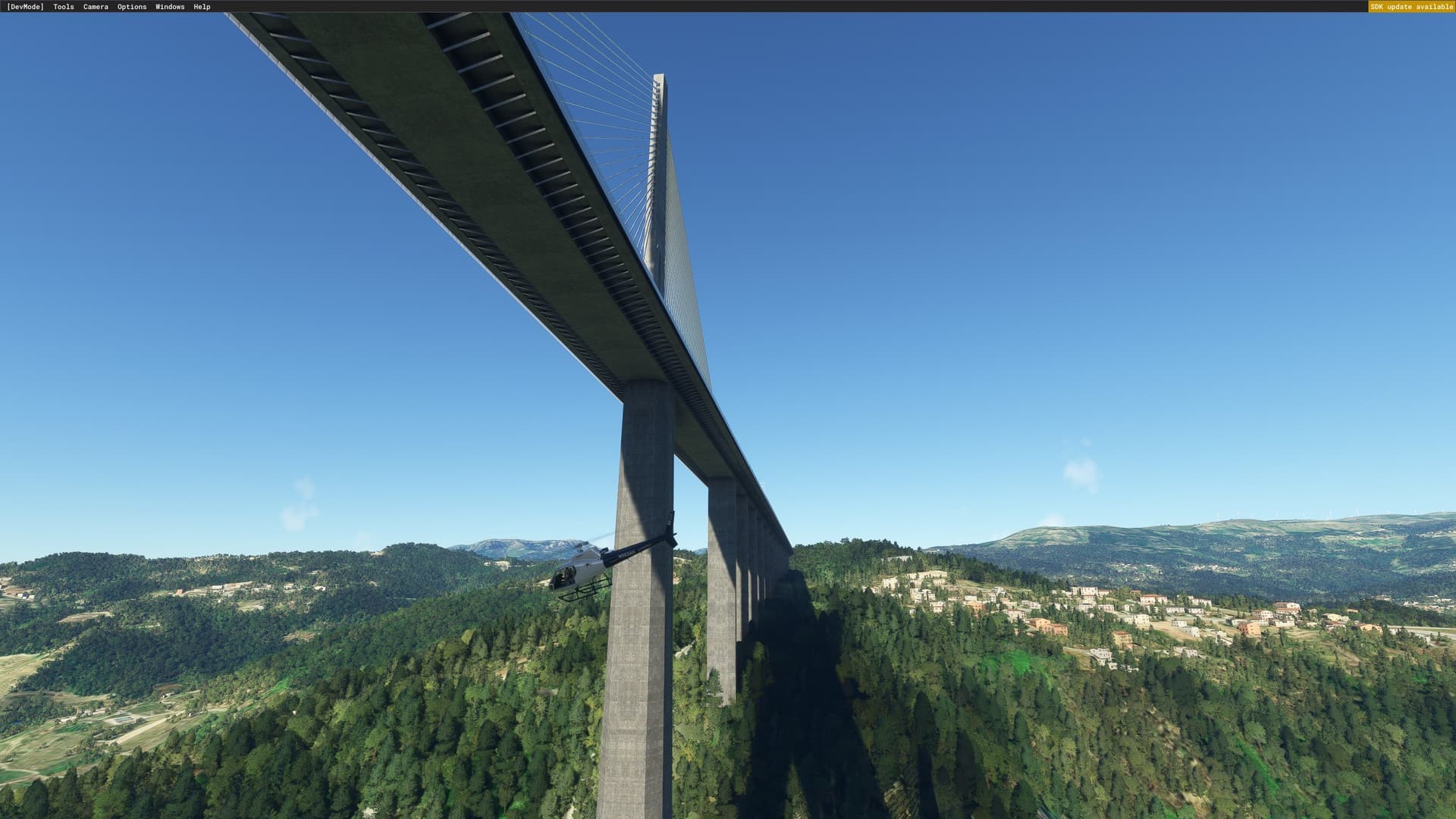 Flying under the Vila Real bridge in Portugal in the freeware H125 helicopter. 41.278442 -7.751565