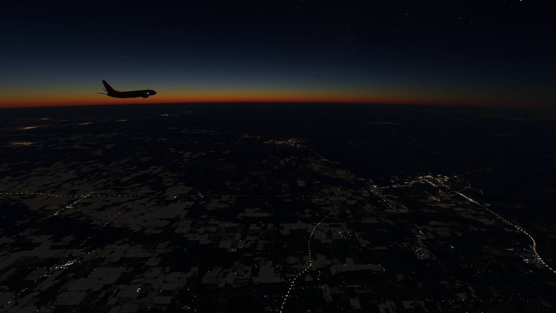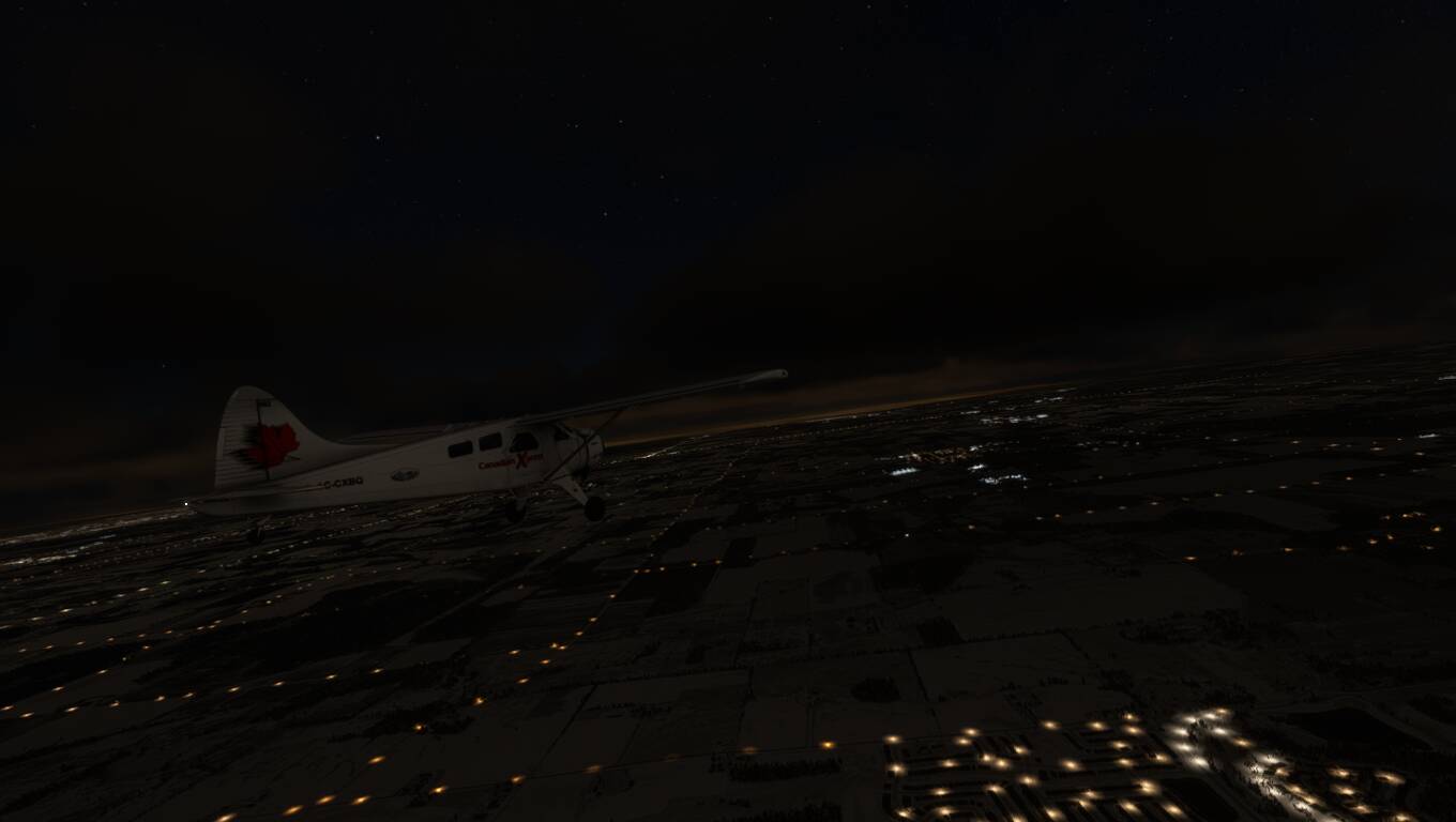 … peaceful, breaking clouds and starry morning but cold still night flying from Barrie to Hamilton, Ontario