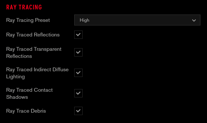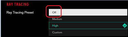 Hereâs a screenshot of the ray-tracing options in the game called Control:
