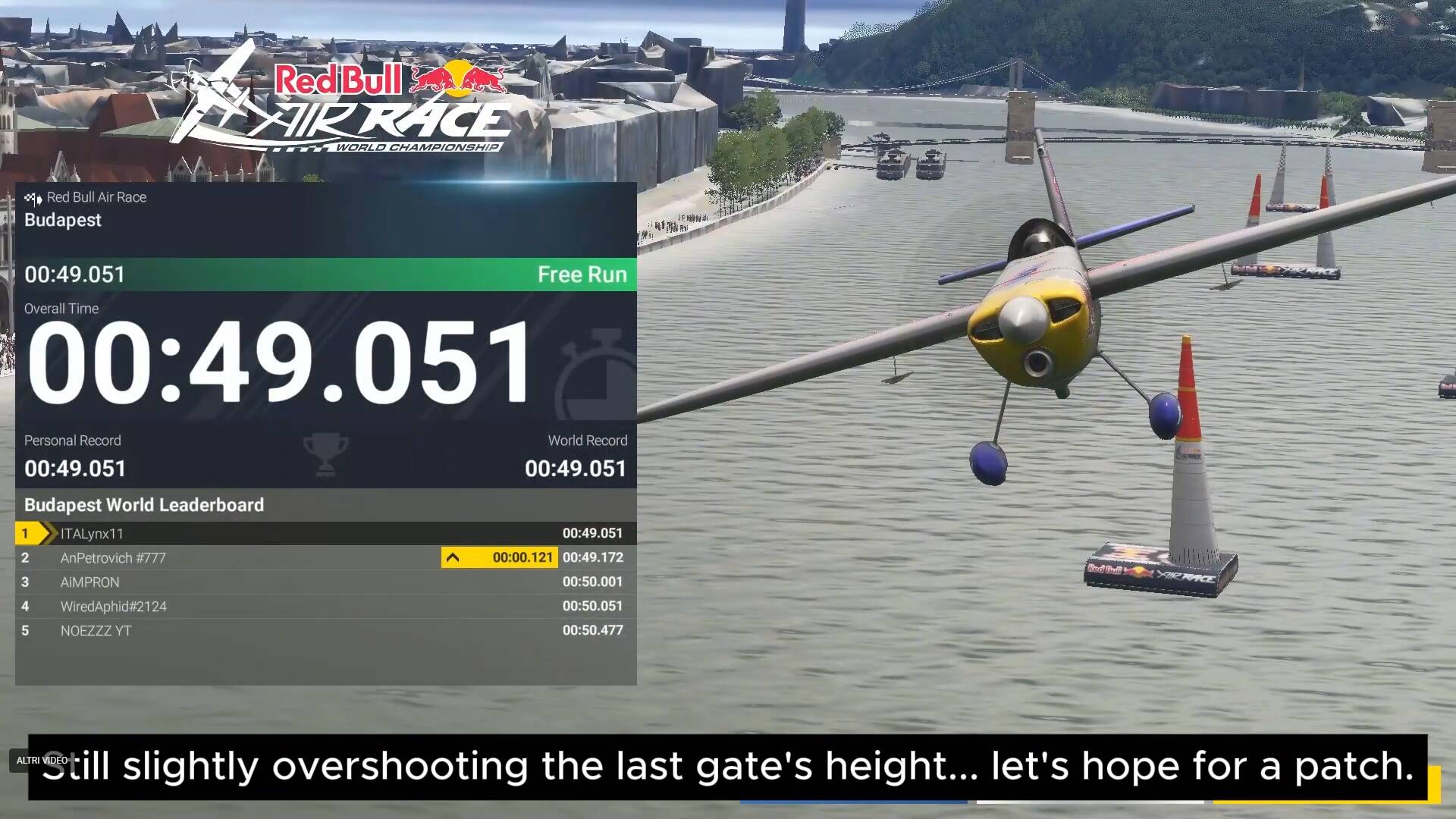 I noticed that you slightly changed the line through Gate 4 and the approach to Gate 5, and that’s a very clever and logical refinement. The aircraft really seems to lose less energy that way: the turn after Gate 4 can be done less aggressively than if it’s initiated before the gate, and the entry angle for the vertical turn becomes more optimal for the run through Gate 6.