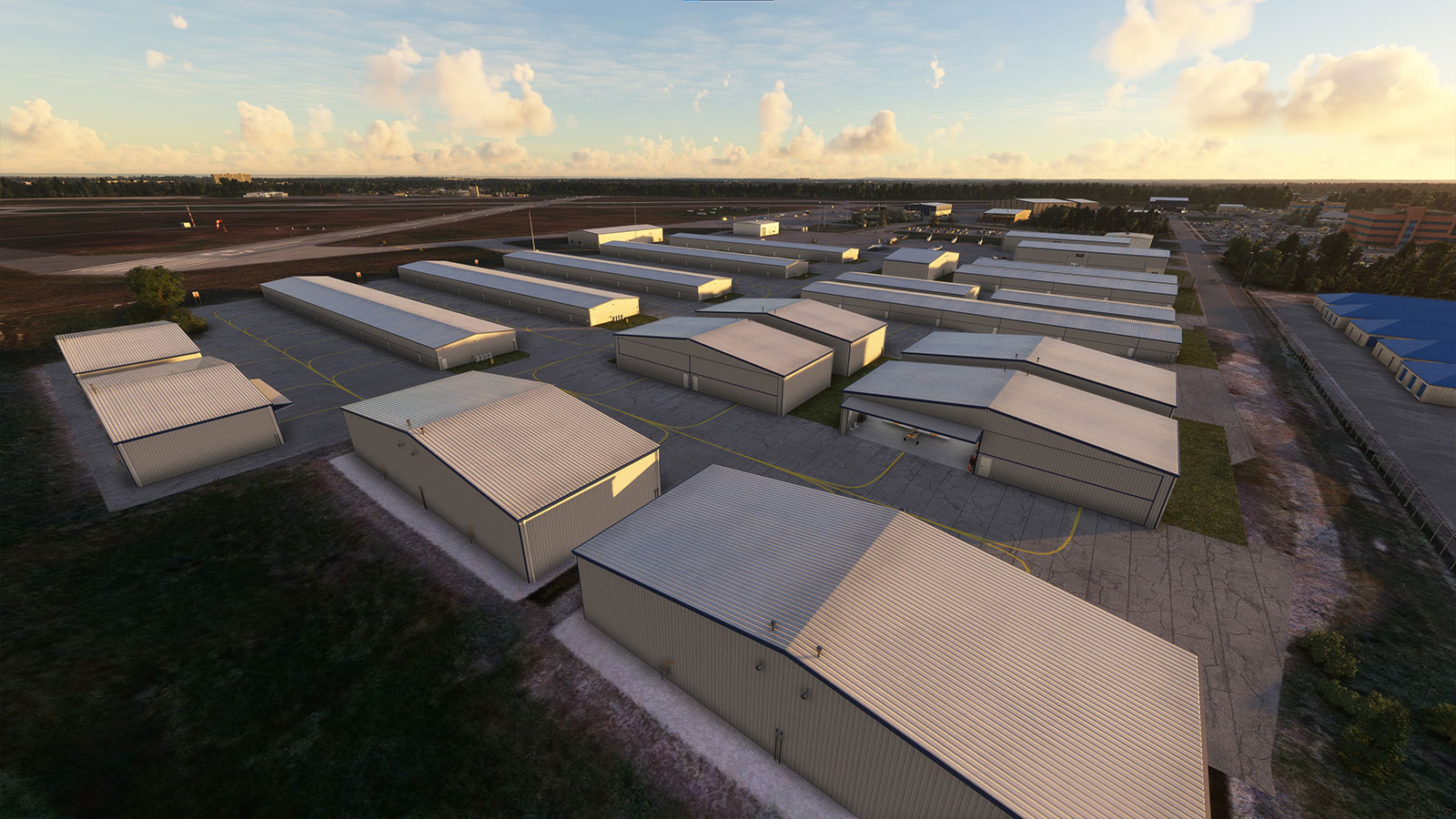 Over 50 buildings were handcrafted, along with a multitude of objects and highly accurate ground markings and night lighting, to create a hyper-realistic experience for serious Flight Simulator enthusiasts. Hundreds of objects were placed throughout the airport for a realistic busy business and GA airport feel.