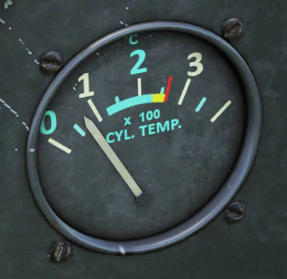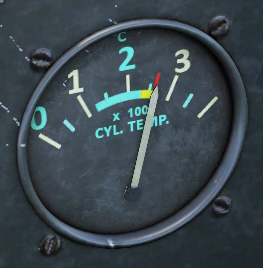 There is one thing I’ve noticed: The cycl. temp. gauge jumps. I did a test about what it takes to blow the enginge. At one moment the temperature is fine then it jumps to the red line. No movement here. If you wanna fly the plane to its limits it would be good to see the temperature rise.