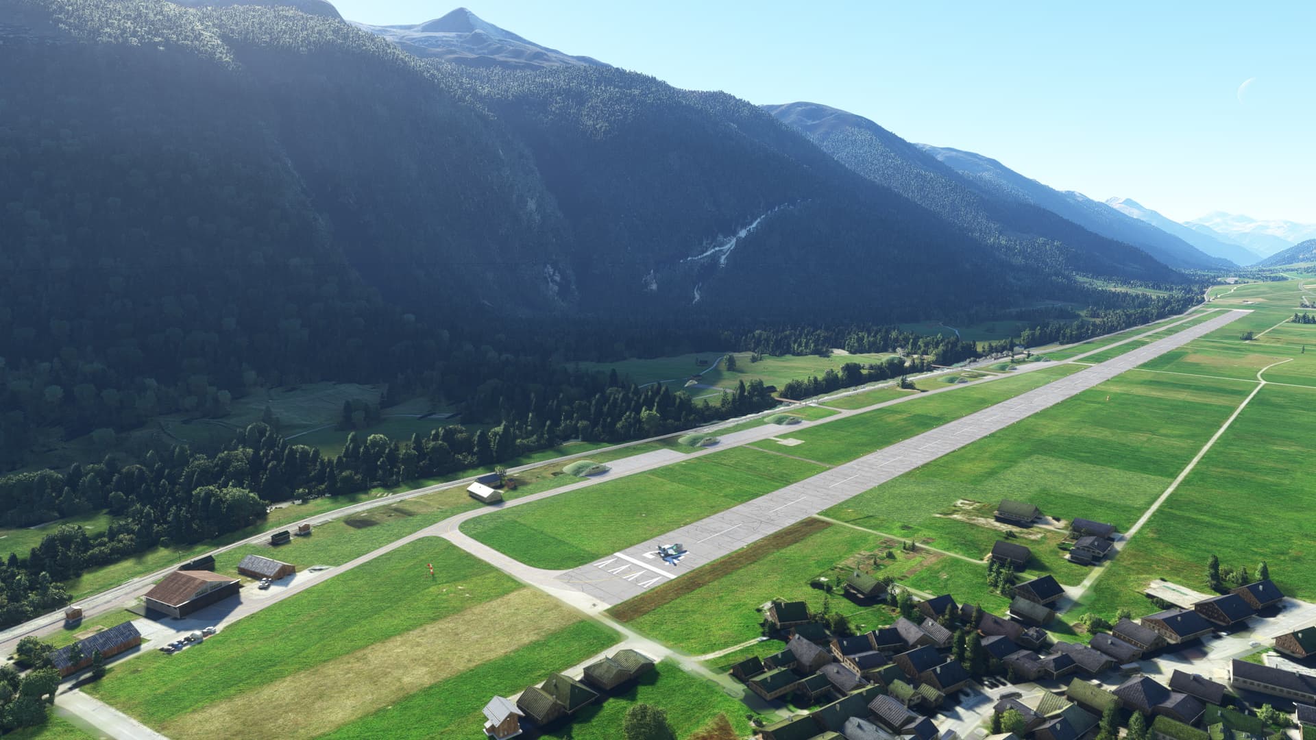 - The airport has two shelters on the other side of the Rhone (up there called Rotten). These shelters are connected to the taxiways with wooden bridges! So in the scenery you have to taxi over a wild mountain river in order to reach the runway.