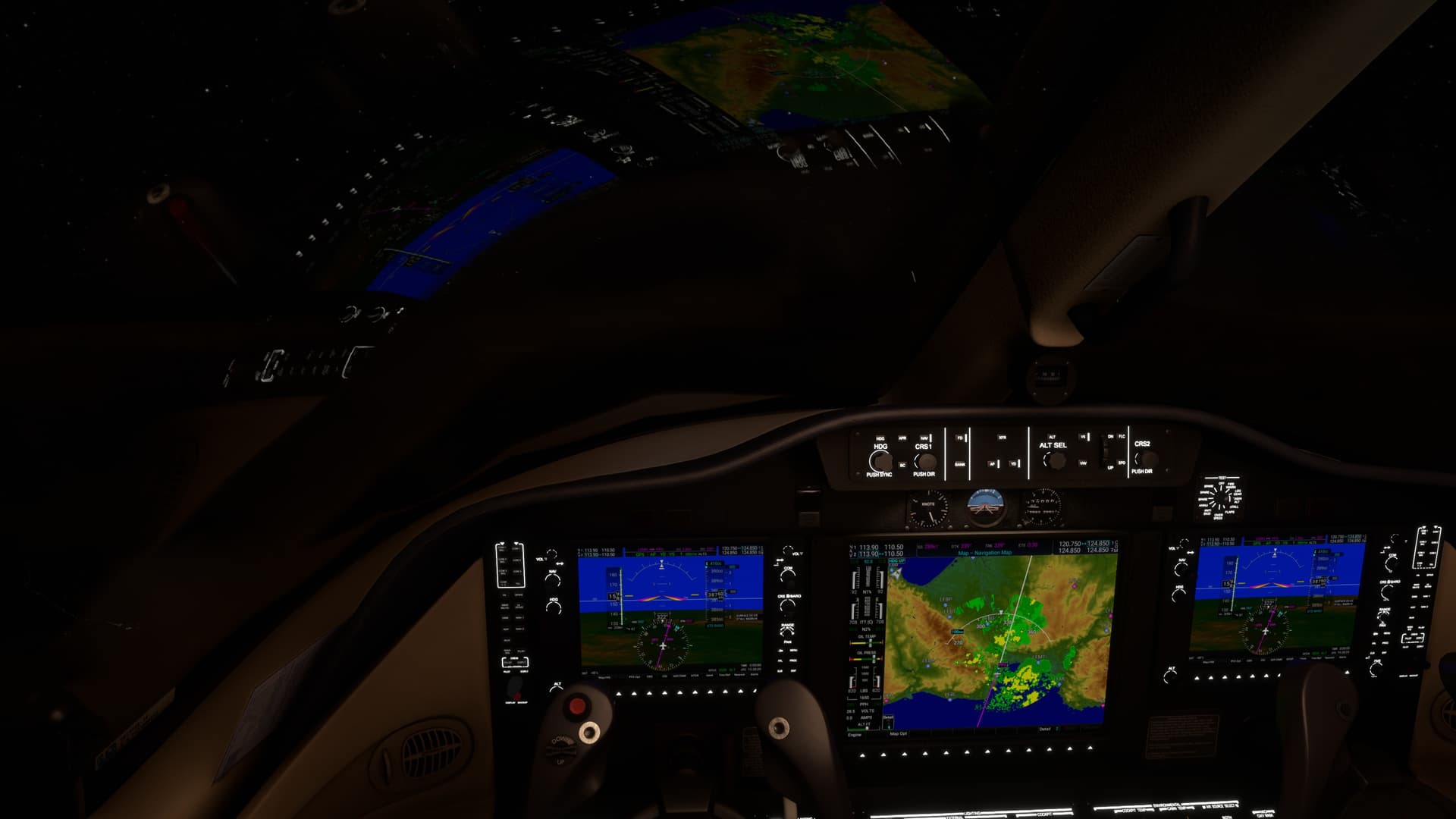 Just an example of the windshield reflection at night. The aircraft displays are set to minmum brightness.