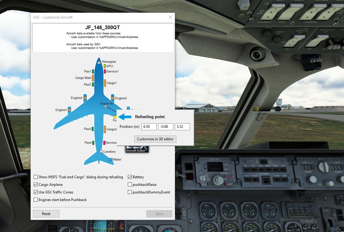 Iâve played around with it a bit more, and saw that GSX Pro now actually seems to come with a profile for at least the BAe146-100 variant. According to the GSX manual, you need to match the ICAO Type Designator code in the aircraft.cfg file, which JF have set to â141â, to the corresponding field in your Simbrief profile (so NOT âB461â). Iâve uploaded a YouTube video with a tutorial / demonstration of how this all works together. The first couple of minutes are a detailed visual guide to what tweaks and addons I used, plus my specs, and then follows a 40-minute recording of everything from cold-and-dark to just after take-off, using all the GSX services. Flows are a bit off thoughâŠ
