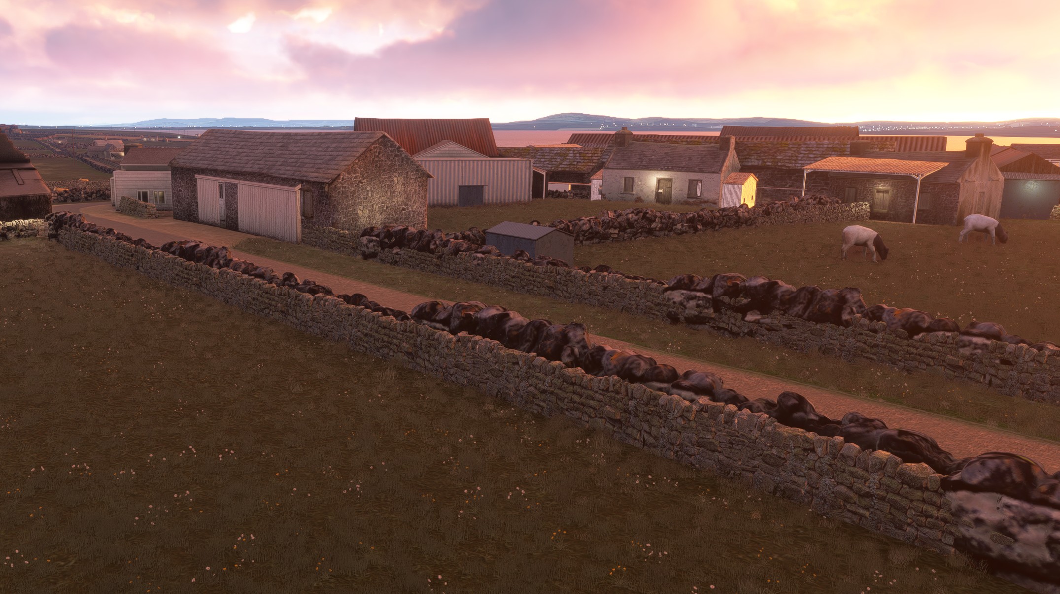 Night Lighting: Custom lighting for the airfield and the small clusters of homes, perfect for those moody Scottish winter arrivals.