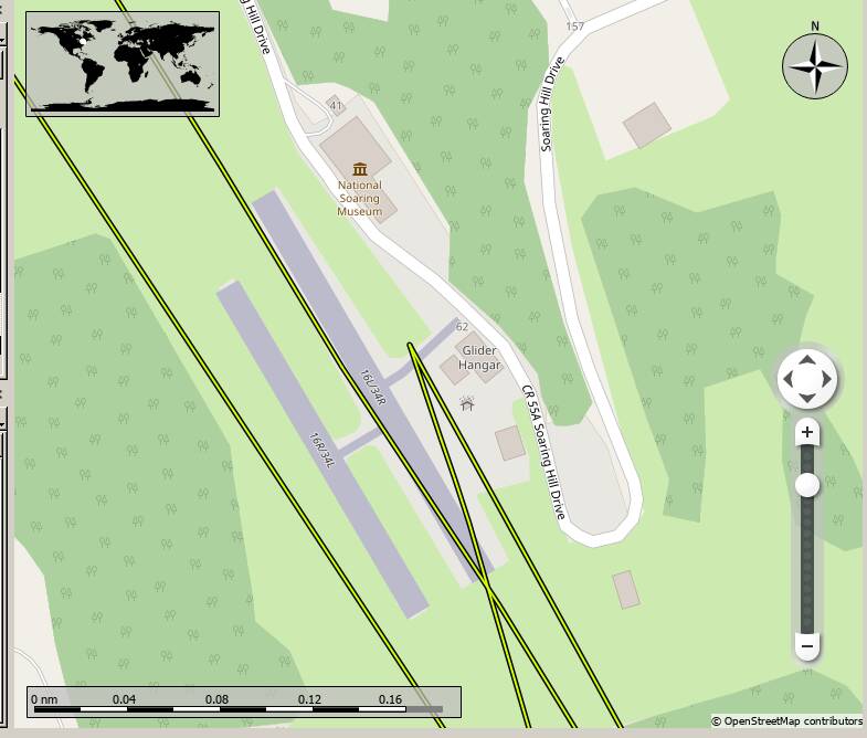 I could have searched that too, but zooming in shows you the scale because Alex has the built-in legend in the map. Just a little over 1,000 feet. That ferry flight ain’t gonna be a A score outcome for sure. And it wasn’t lol. Had some penalties for landing short. And it was on top of a hill too (makes sense for gliders). Man that was ugh-lee.