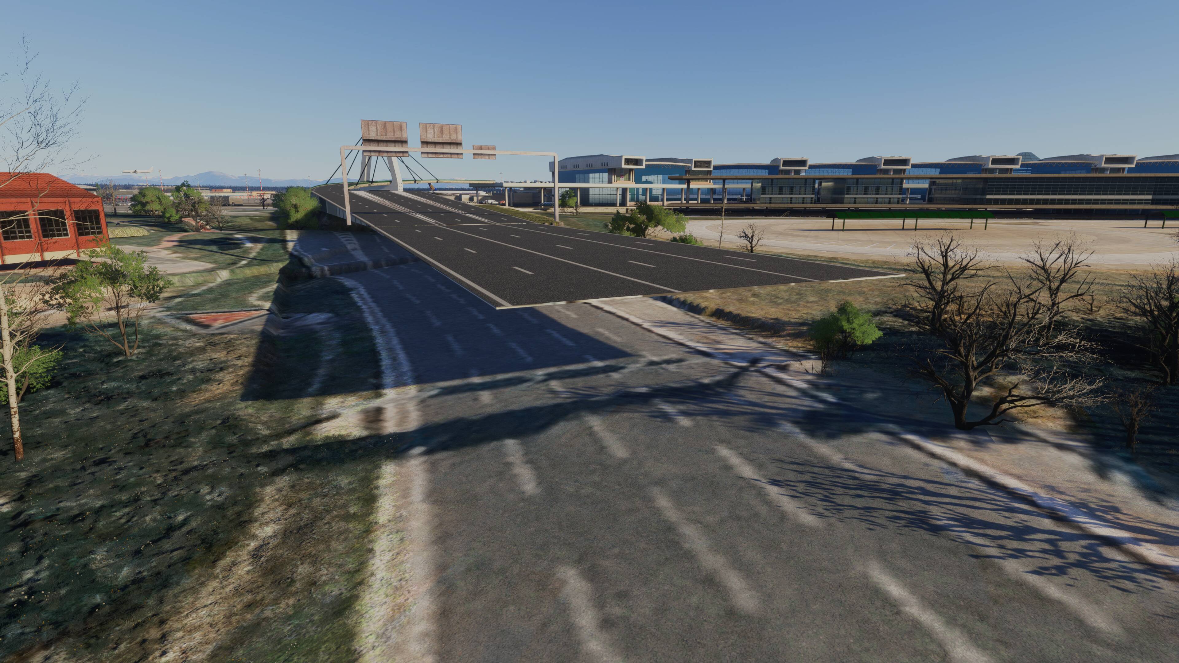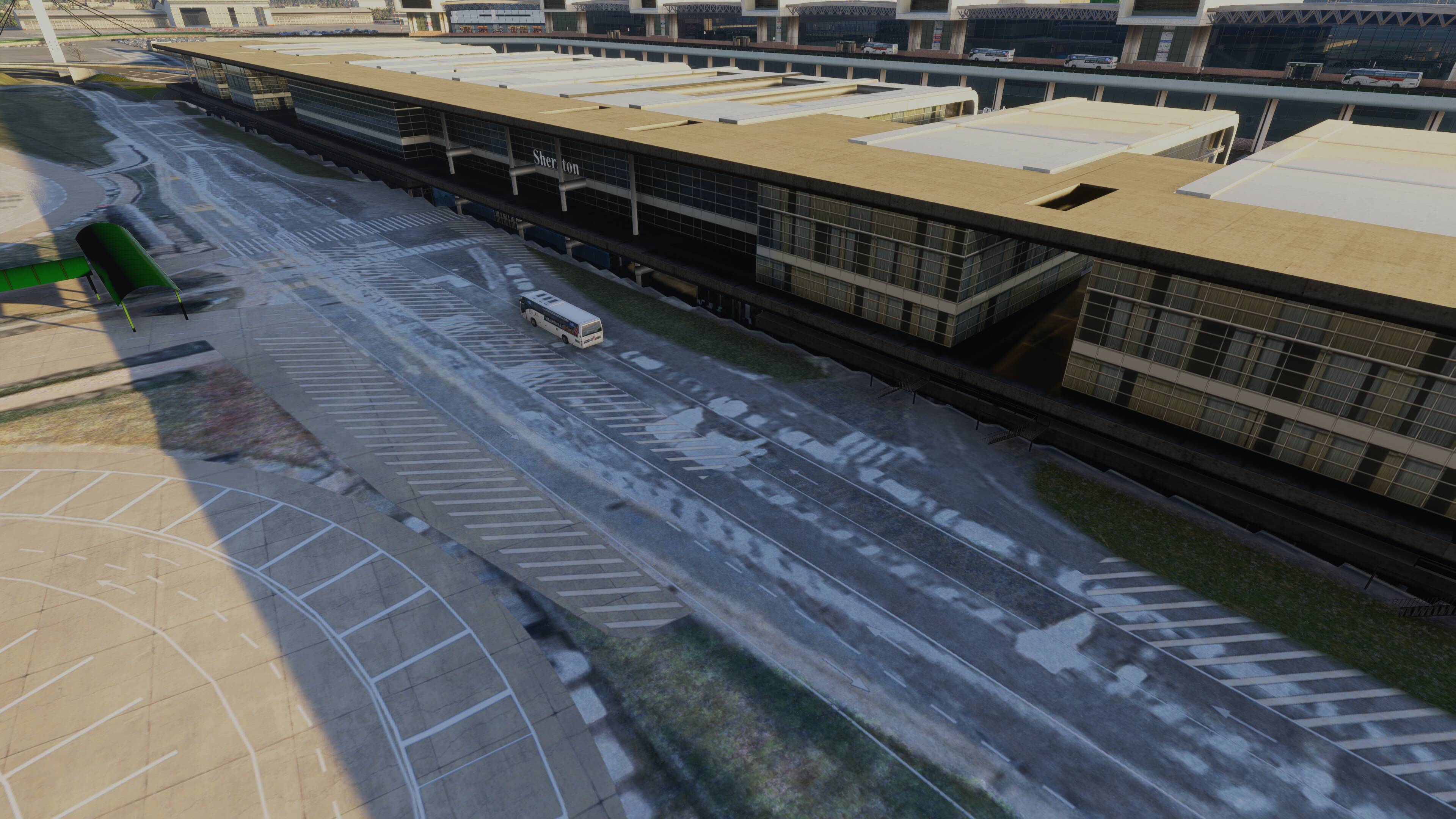 The terminal landside is so tragic, you can’t really help but laugh. It’s a total botch job that mixes sloppy custom modelling with default satellite imagery. Nothing fits with anything else, and the number of serious terrain anomalies is disturbing. There’s not even been any effort to hide or otherwise tidy up any of this unsightly mess. At least the ramps and roadways immediately outside the terminal entrances/exits are properly modelled — and a few custom vehicles ensure the area is not totally devoid of life —but the resolution is perhaps questionable. Speaking of resolution, it’s just too low in many key areas, making the whole airport feel more like something out of FSX than a product designed for a cutting edge simulator.