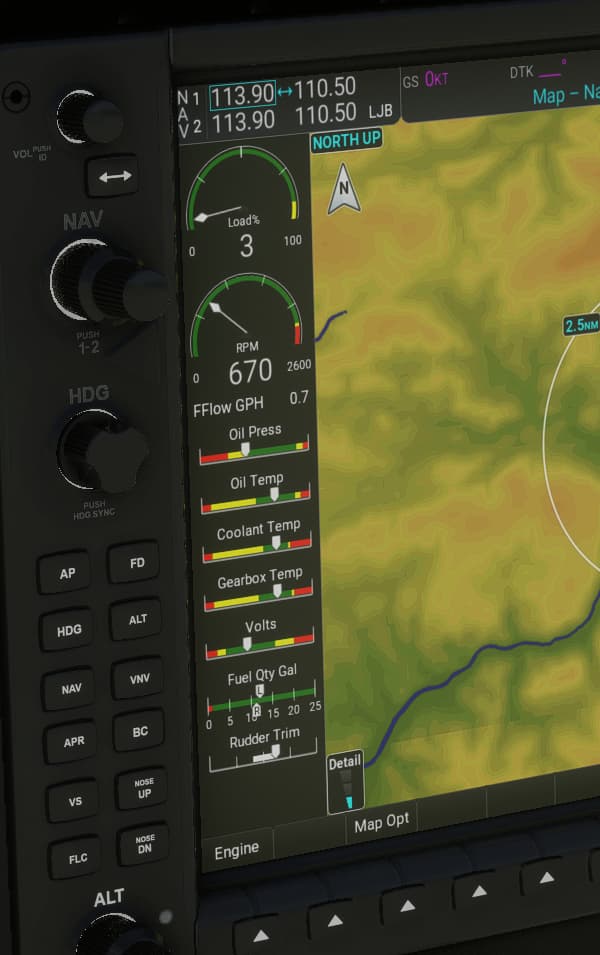 The avionics system goes off the default G1000Nxi by WT but I noticed the screens themselves seem a bit more matte in the sunlight than other G1000Nxi models in the sim - creating a glare effect in direct sunlight. This little detail was nice to find as in most real G1000 aircraft - the screens are indeed matte and difficult to see in the sunlight. The flight model was incredibly easy to fly without being excessively dull. After watching some videos on the real DA50, I realized that the agility and stability of the aircraft in the sim was not an attempt to copy a simple flight model - but actually true to the real deal. Finally, the 4 included liveries kept things interesting between flights with the red and blue liveries being my favorite.