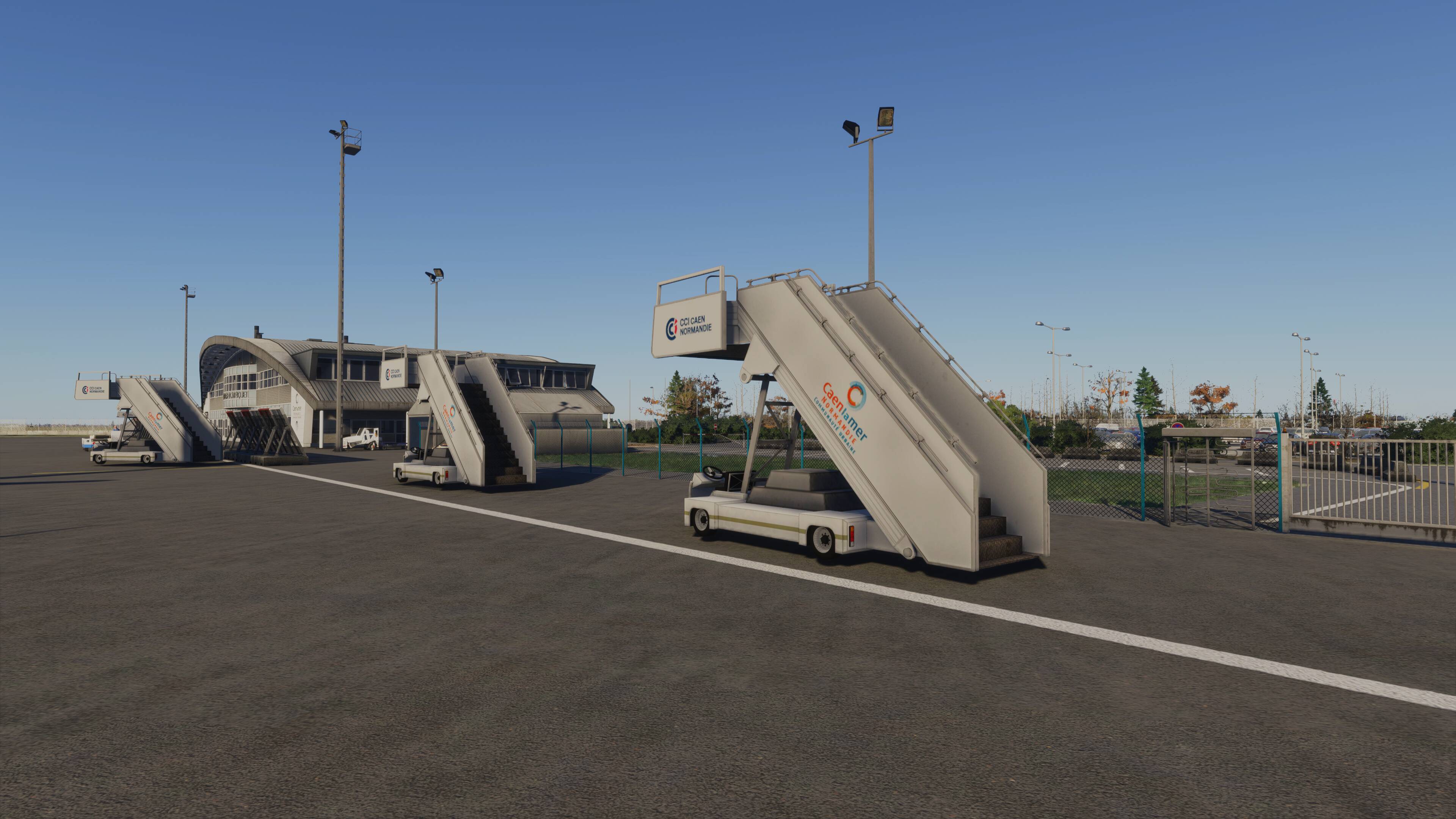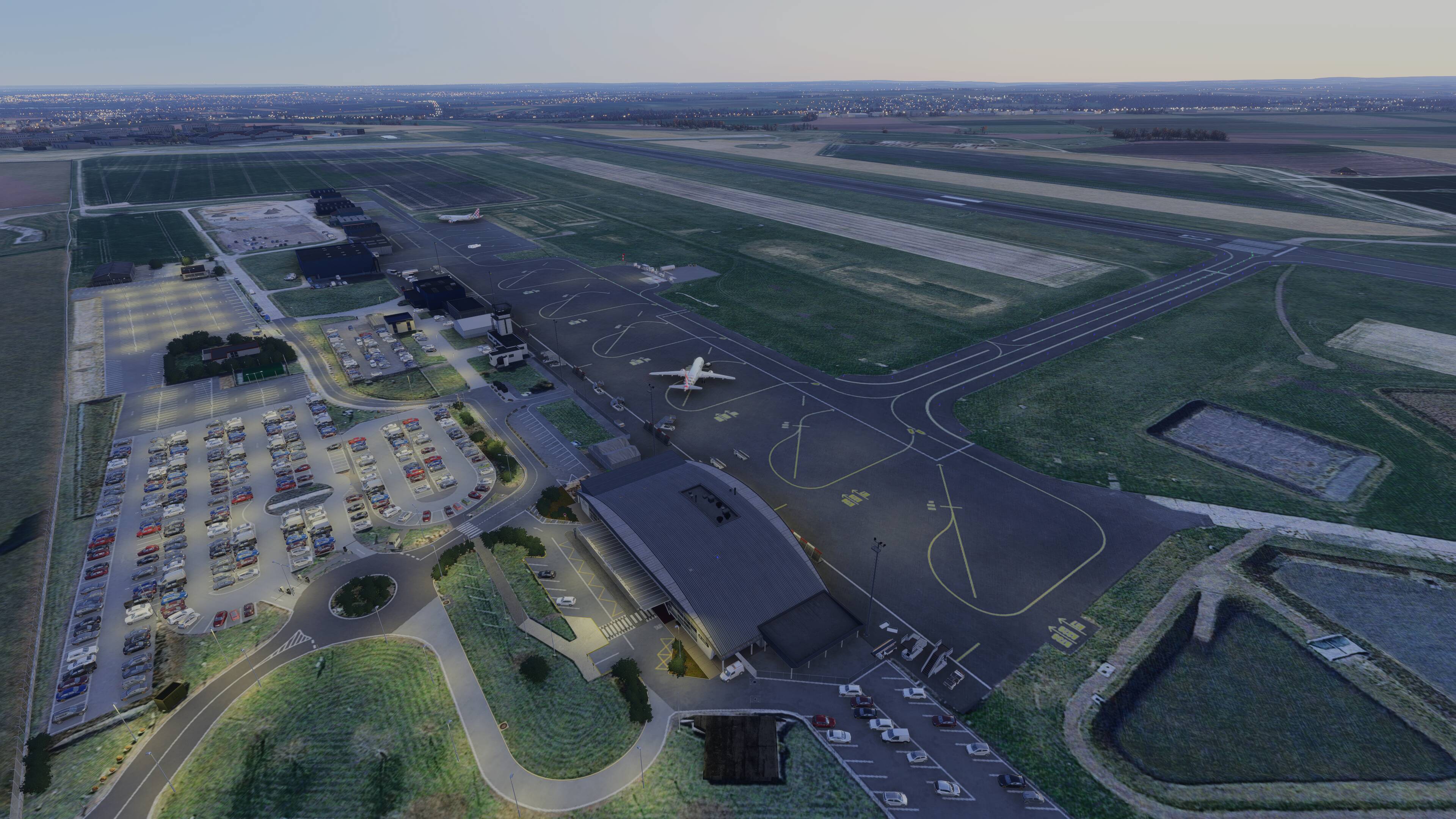 Overall, Supersonic’s Caen is a solid, budget release that rounds out France that little bit more. Sure, there are some small niggles but they’re pretty easy to forget about. The landside looks just as good as the airside, with its abundance of custom clutter (shame about the Asobo cars), and something I find particularly pleasing is the absence of Asobo globes! There are also inexpensive versions of LFRK from BDOAviation and FranceVFR but neither looks as good as Supersonic’s rendition, all things considered. In fact, BDO’s isn’t really in the running but, to be fair, FranceVFR’s does have the most accurate airside ground textures (and possibly a touch more custom GSE). The problem with the BDO and FVFR versions is that they don’t feature much landside modelling, or terminal interior development. These aren’t make or break omissions but they are two things that any good all-rounder should probably include — there’s a lot of glass in the terminal’s apron-facing façade and it’s undeniable that being able to peer in from your cockpit greatly increases immersion. In Supersonic’s, you can even see (from outside) the glow of computer screens at night!