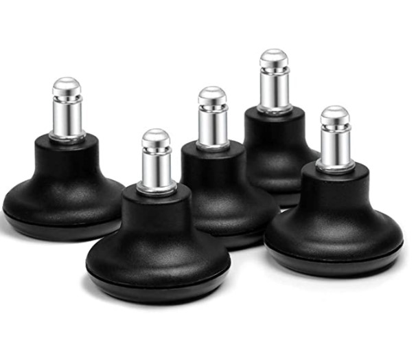 On Amazon real cheap: Bell Glides Replacement Office Chair or Stool Swivel Caster Wheels to Fixed Stationary Castors, Low Profile Bell Glides with Soft Rubber Bottom Instead of Self Felt Pads.