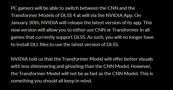 For me right now, as someone who uses VR almost all the time, even without upgrading from a 4090, the improvements in DLSS 4 which are coming to most Nvidia cards will certainly be very welcome. Not the new multi frame generation, as that does not work in VR, but the new method of upscaling, which promises better clarity and handling of movement. As FS 2024 currently has around 30% lower framerates in VR than FS2020, especially for higher resolution headsets, forcing the use of more DLSS upscaling, this is a big deal.