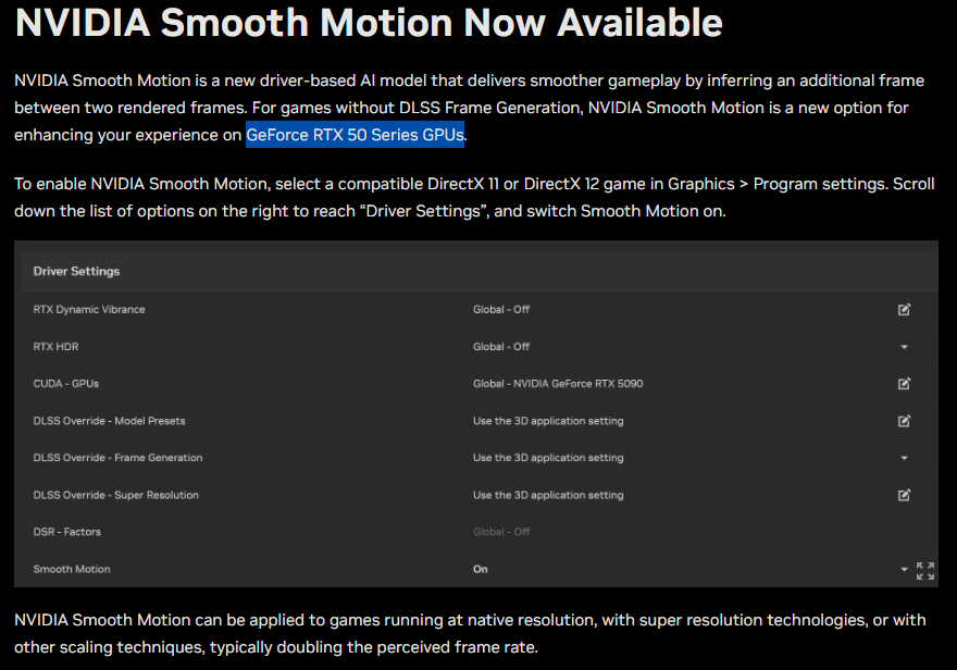 Nvidia App has “Nvidia Smooth Motion” popup it seems, wonder what is it for… Amd fluid motion frames?