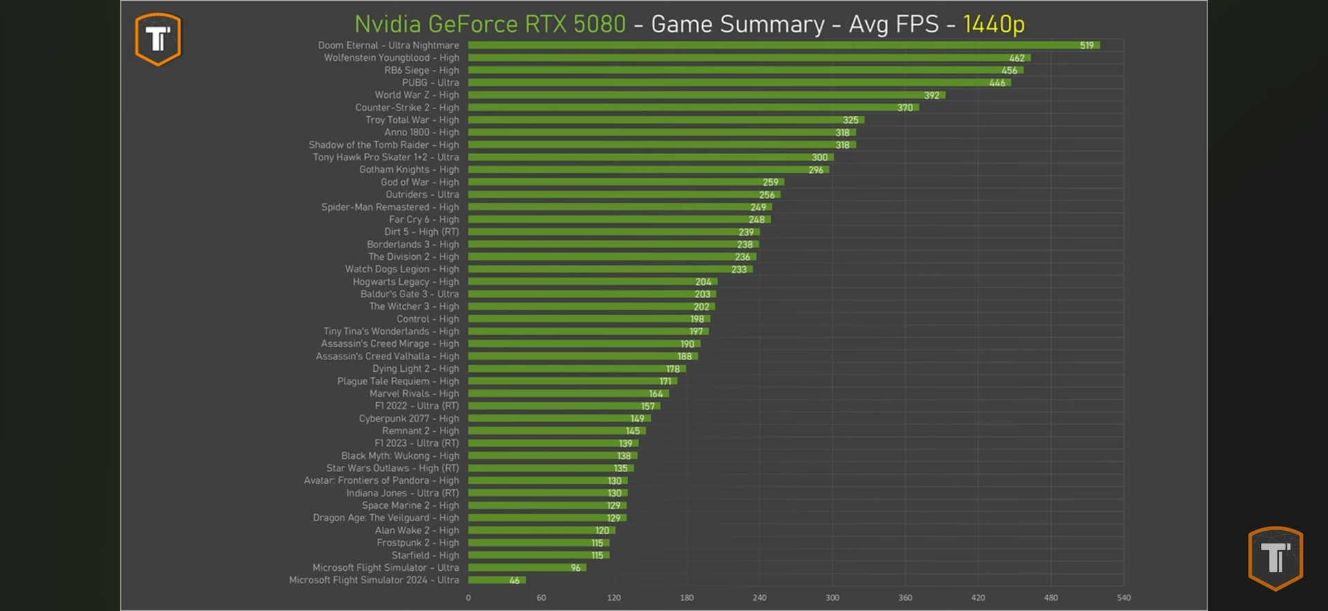 - https://www.reddit.com/r/pcmasterrace/comments/1icndtg/rtx_5080_1440p_benchmarks_no_upscaling_no_rt/