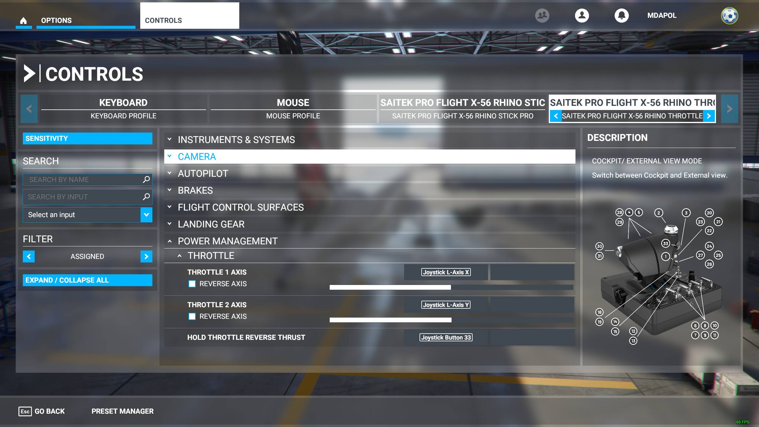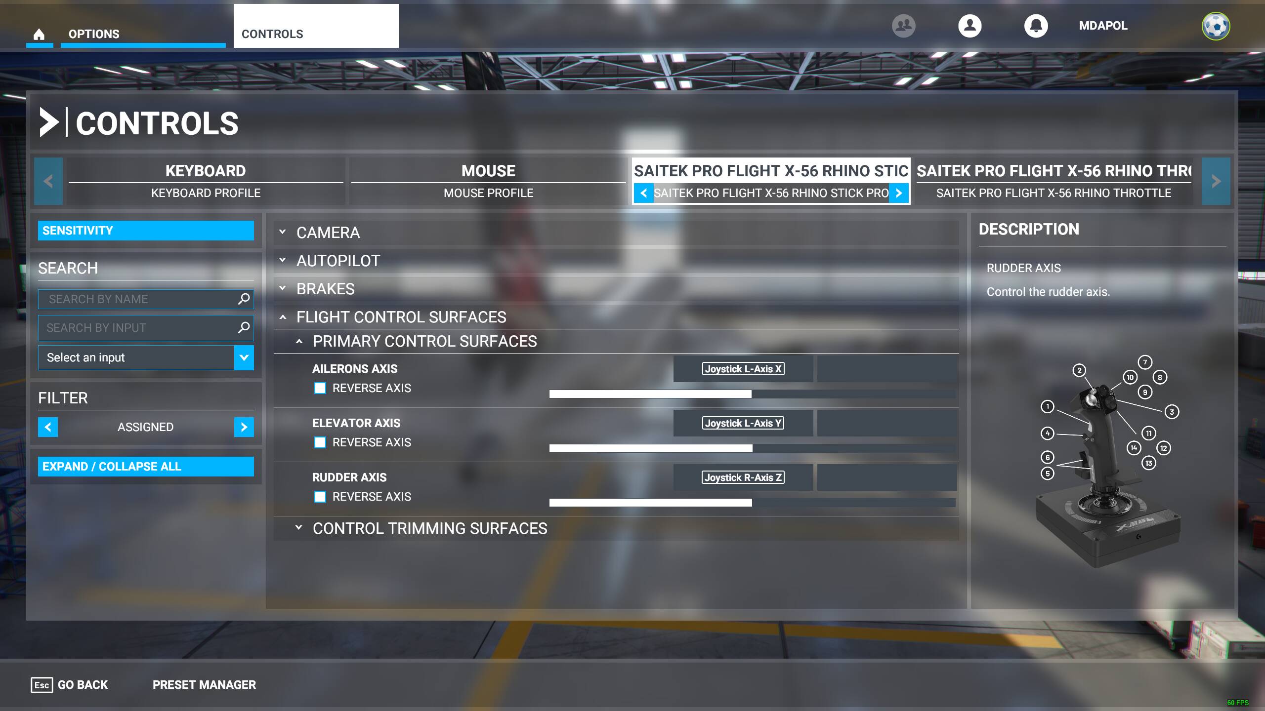 ps…I uninstalled and cleaned Nvidia driver with guru3ddriver cleaner…reinstalled the nvidia version that was working well with x-56 (461.40) and started MSFS 2020. Same problem. I was wondering if one of you guys who are using the x-56 could screenshot their settings within MSFS controls–specifically the elevator (pitch) and aileron (roll) axis section. I’d like to see how others have their bindings set. Thanks!
