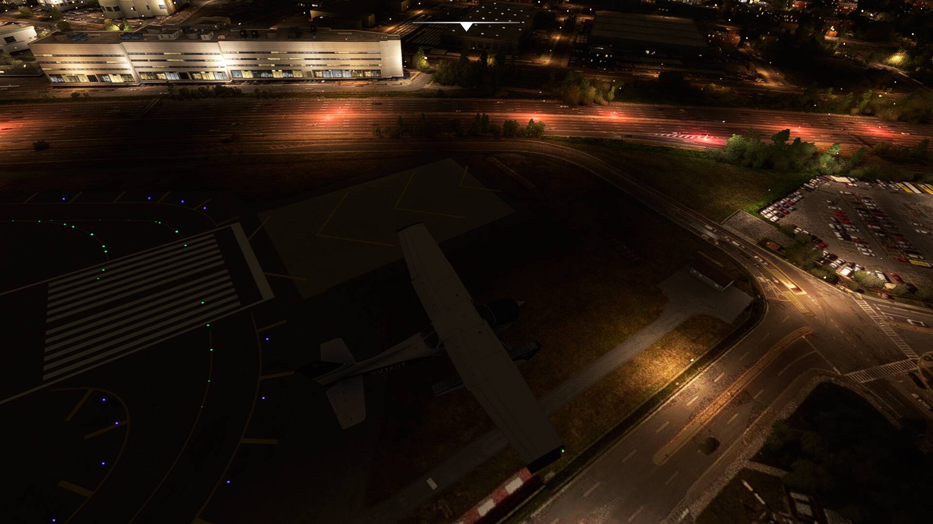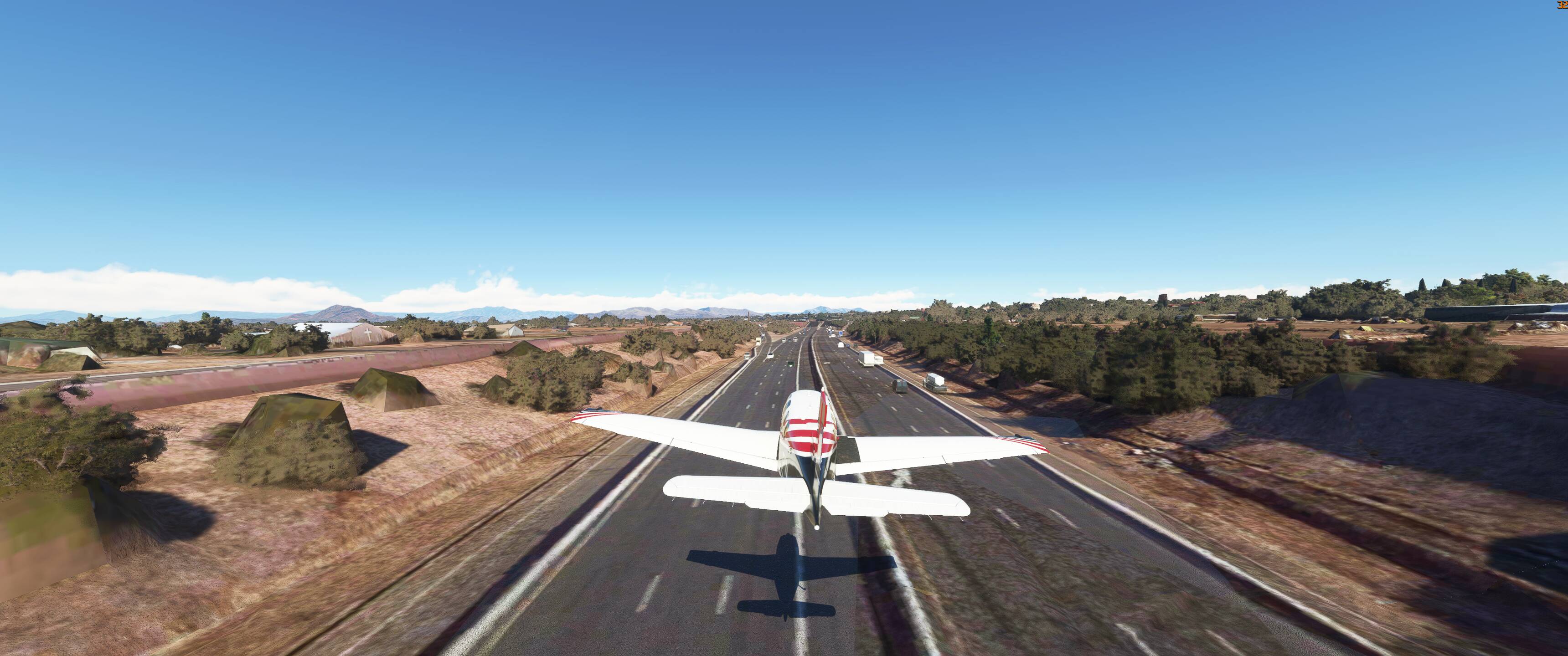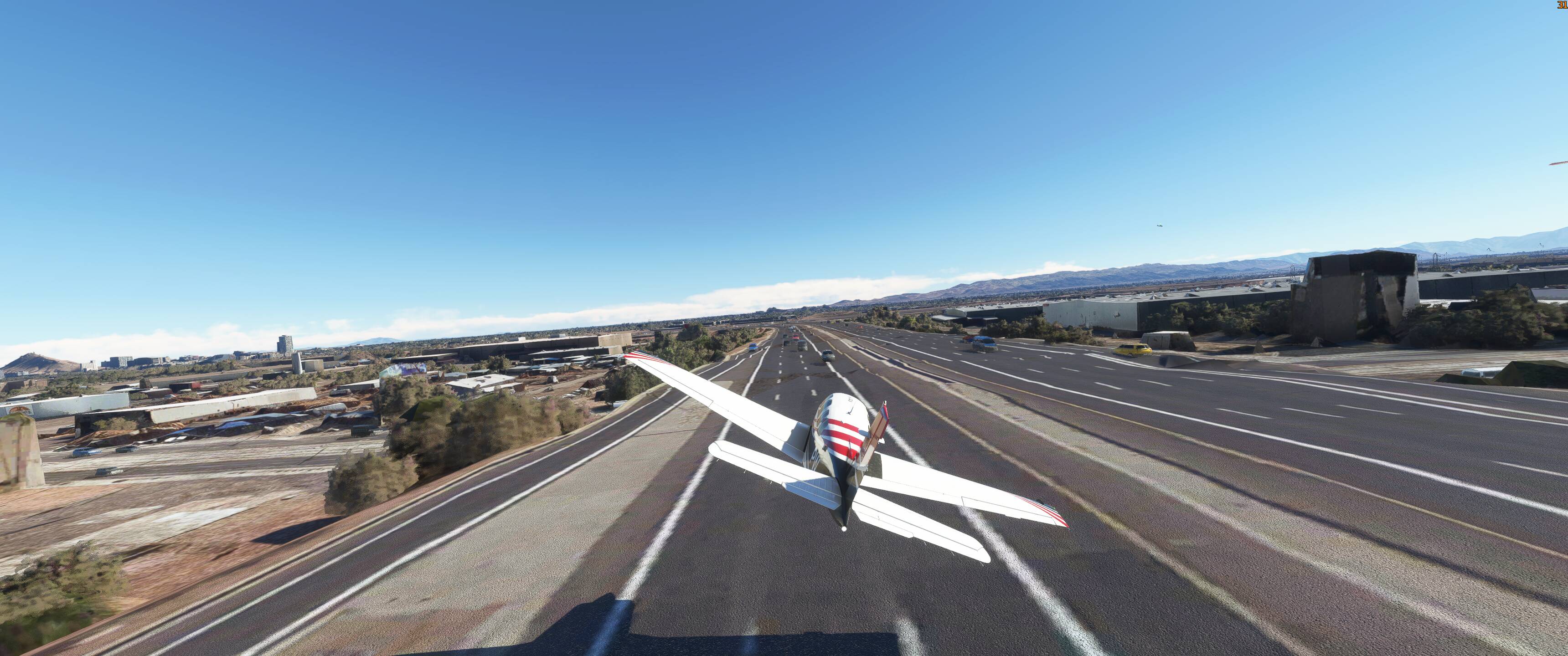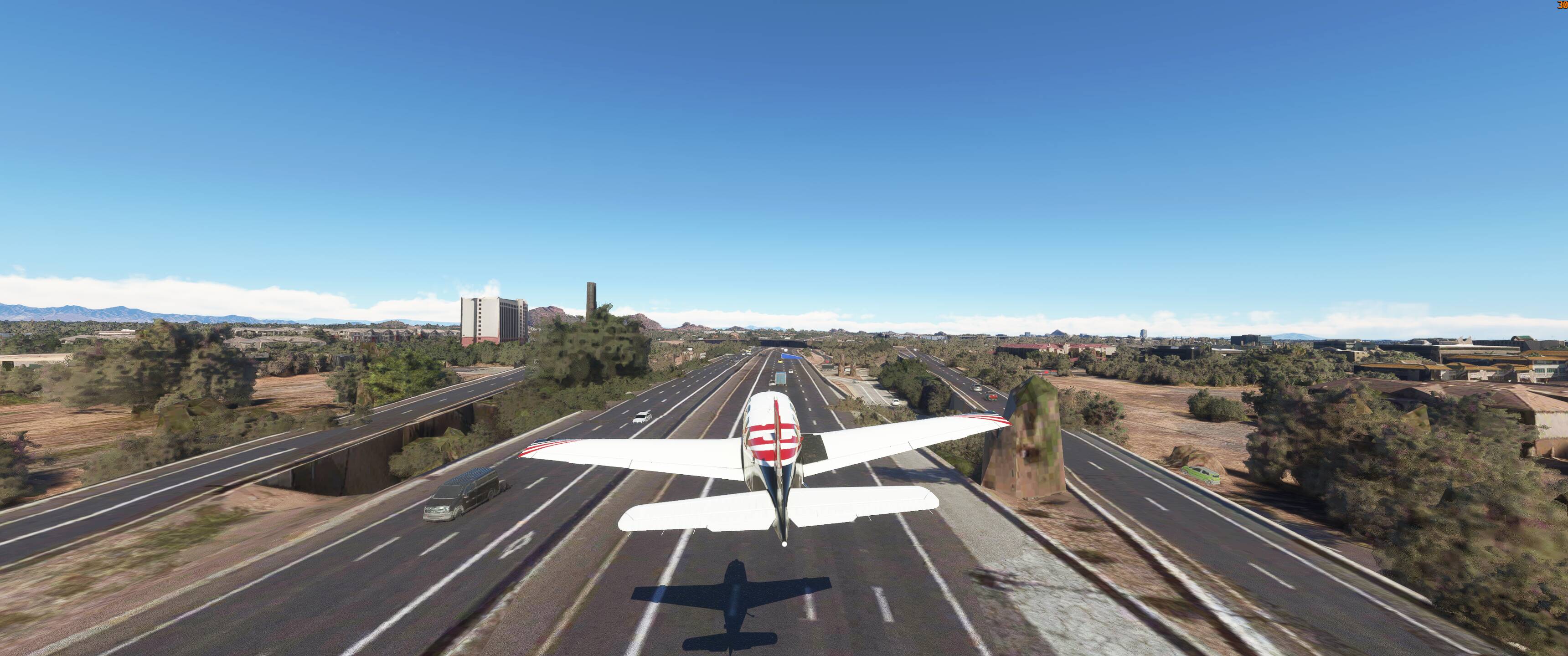 I ve landed on freeways in the caravan many a time and the closer you get to the ground the bigger the cars seem to get (and no I dont mean that in the way push stick forward houses get bigger) smaller. But the caravan takes about, 2 1/2 lanes when sitting on the highway here.