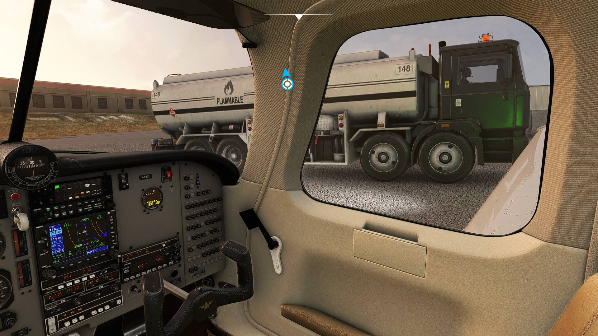 Here the scaling from the Mooney M20 in comparison to a Cessna and a Fuel-Truck and the person inside the fuel truck: