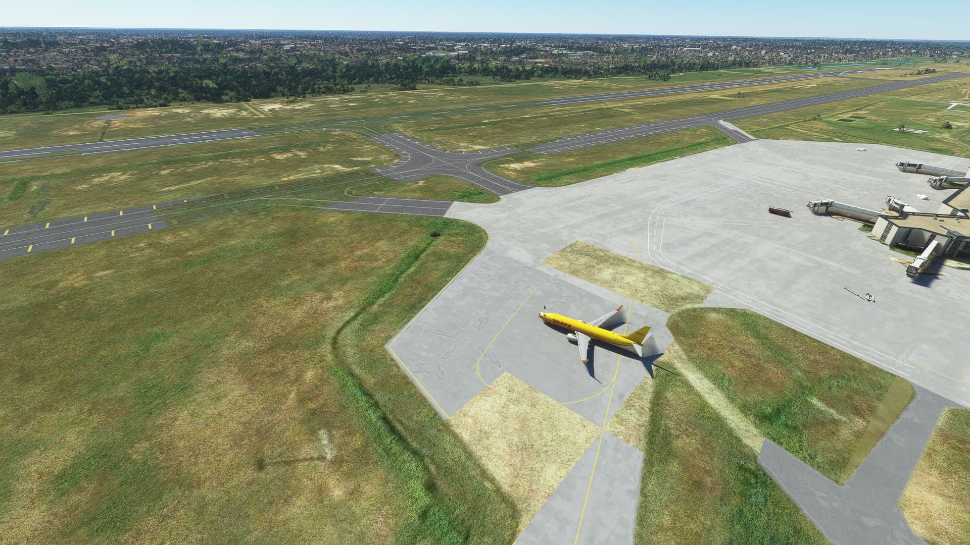Sometimes the simulator for some reason decides to load the Bing scenario and not the airport (either MSFS default or 3rd party). This happens anywhere and at any airport. The only solution I found is to put the drone camera and go as high as possible. For some reason that makes the scenery load correctly in 95% of the cases.
