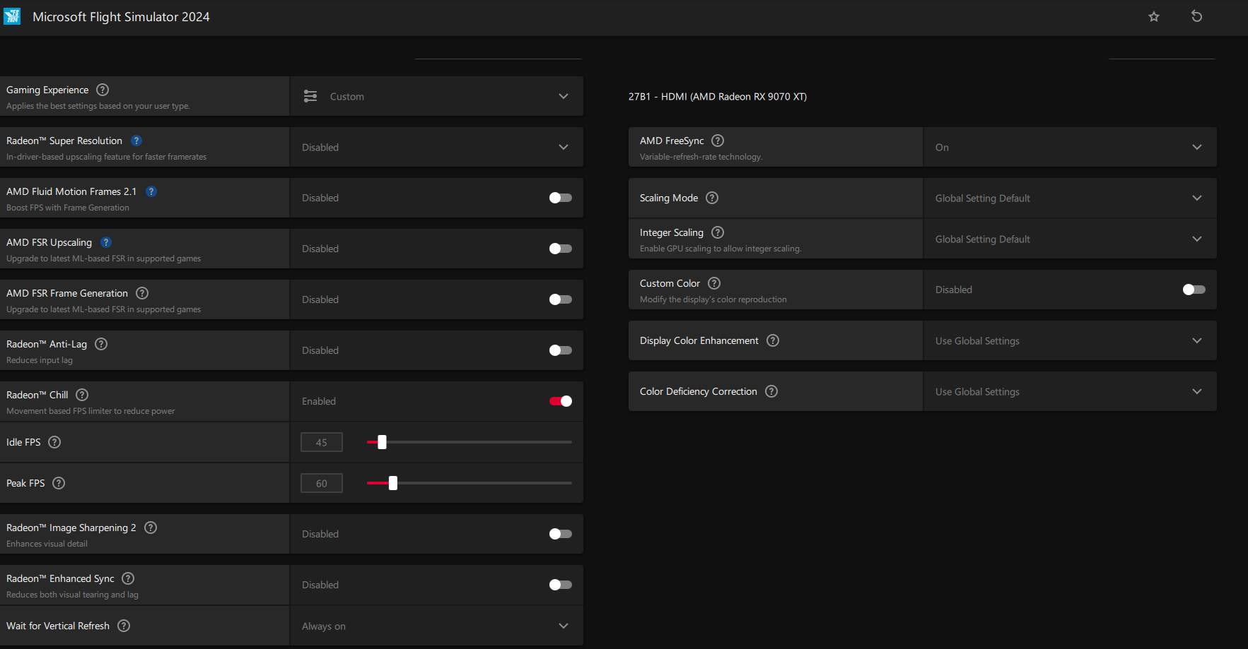 And disabled Radeon Chill if it’s enabled because it must be interfering with the settings in msfs
