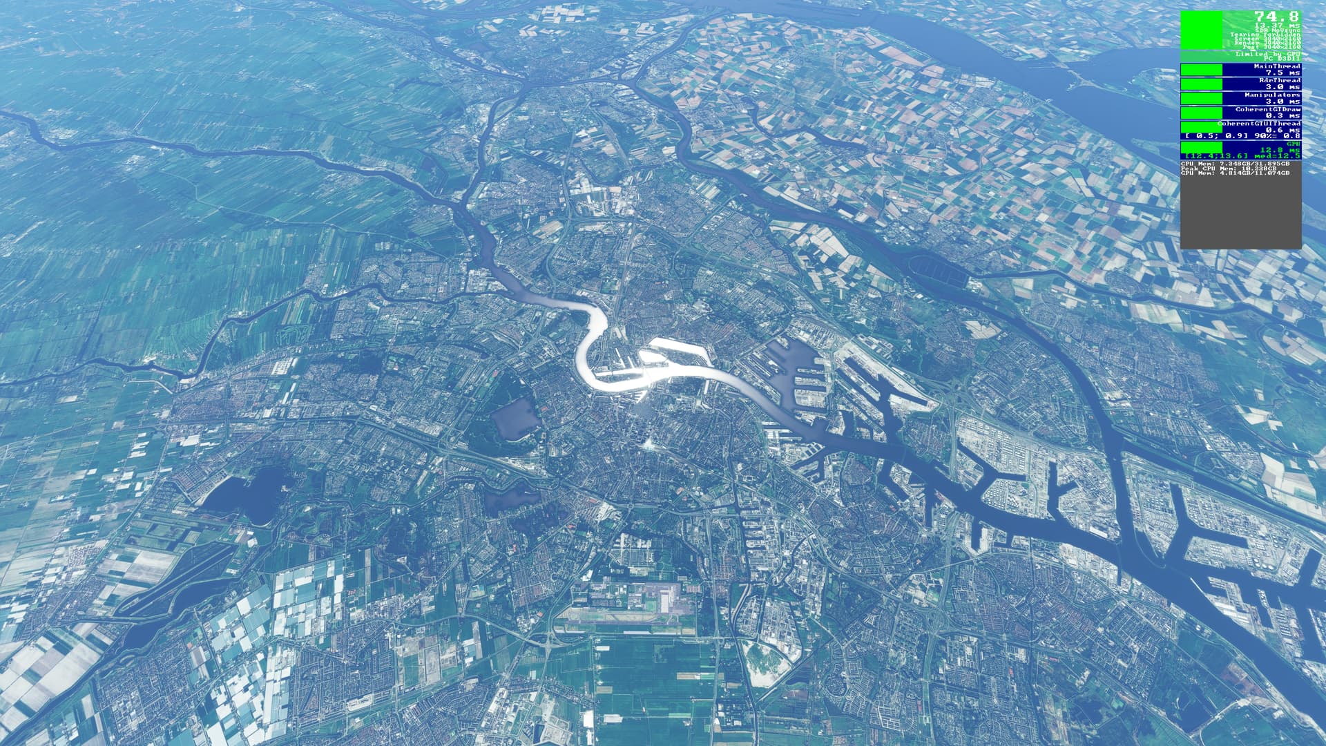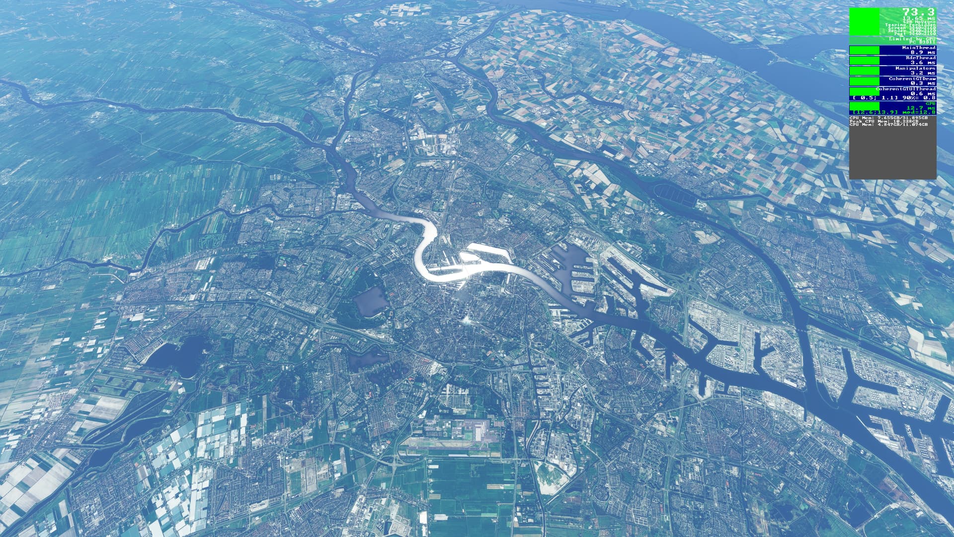 DAYTIME: (look closely at detail sattelite textures, it’s sharper in distance as well…)