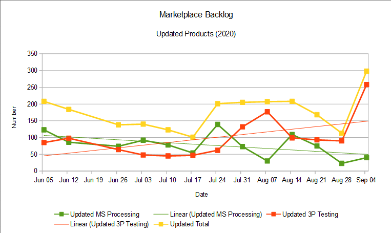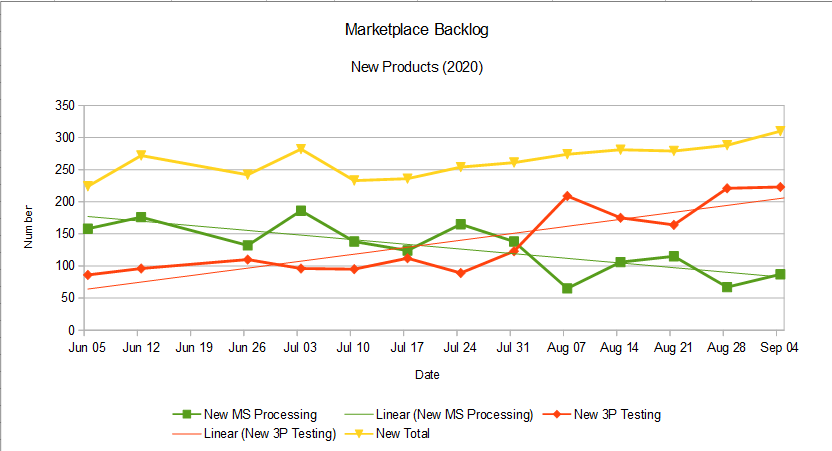 I’ve been watching the numbers in the Marketplace Backlog (2020) tables and have had a hard time determining if any progress has been made in getting products into the marketplace more quickly.