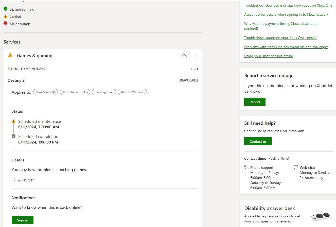 This xbox scheduled maintenance is for Destiny 2.