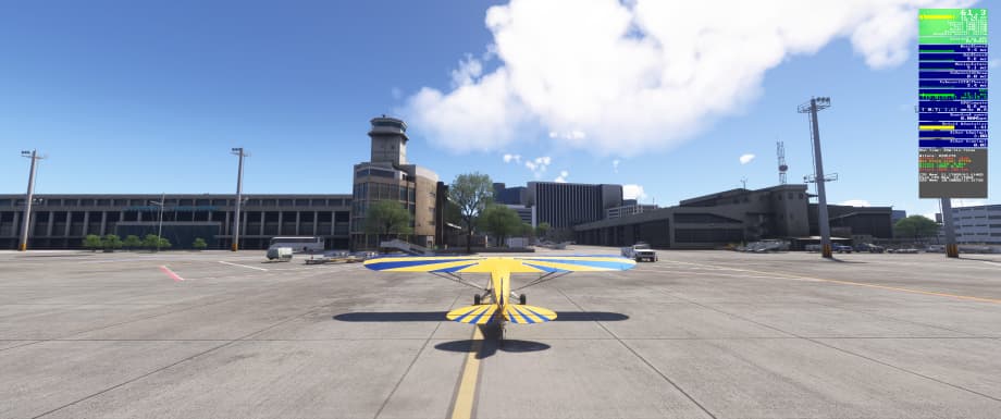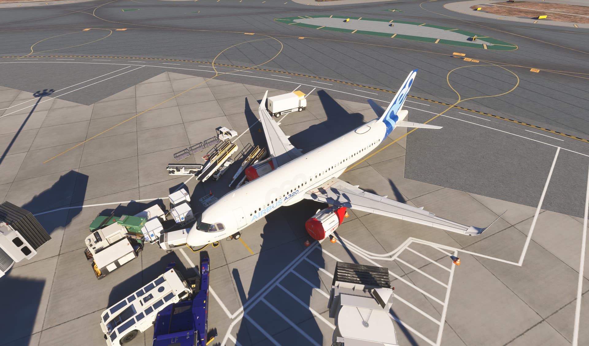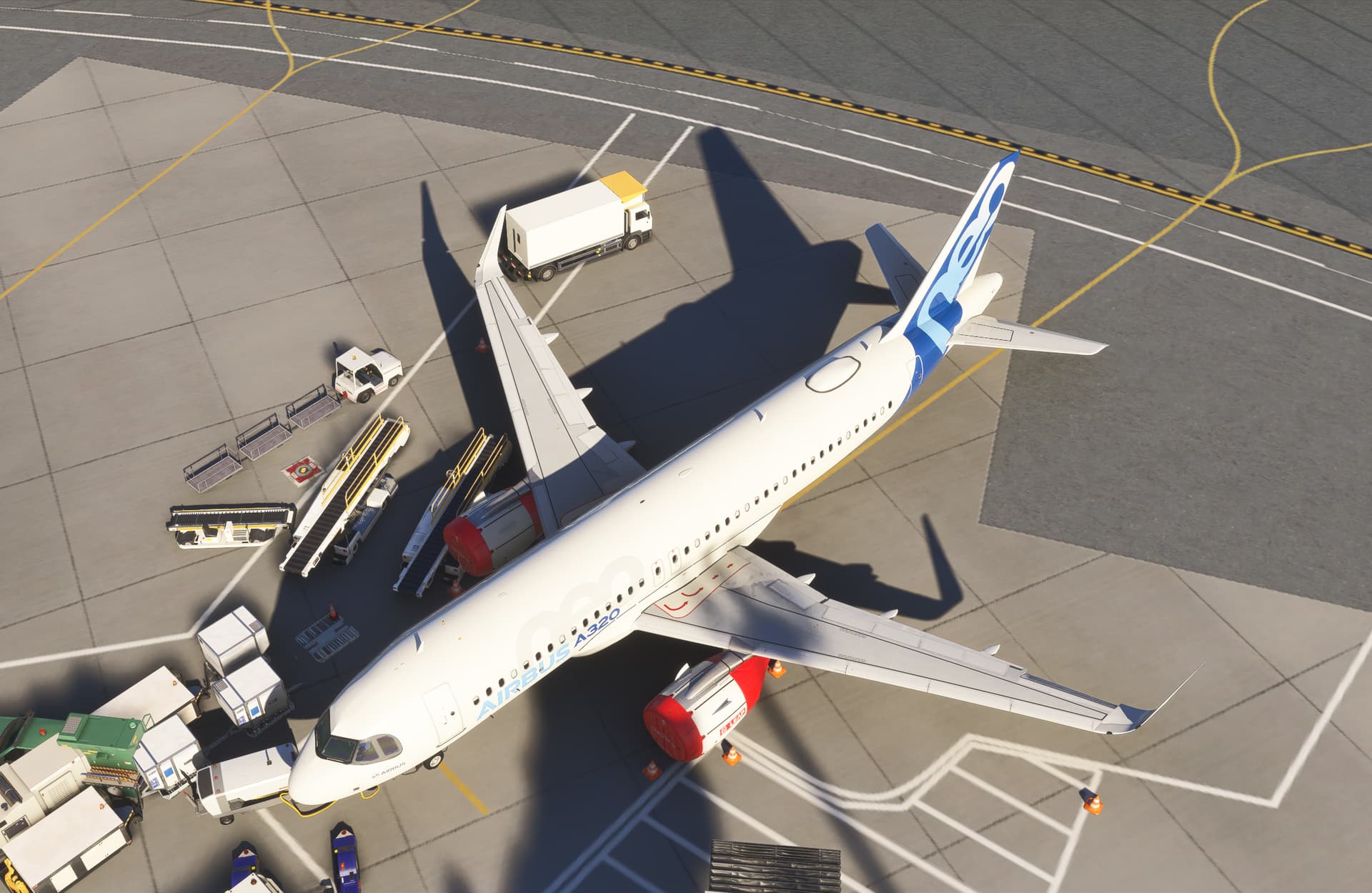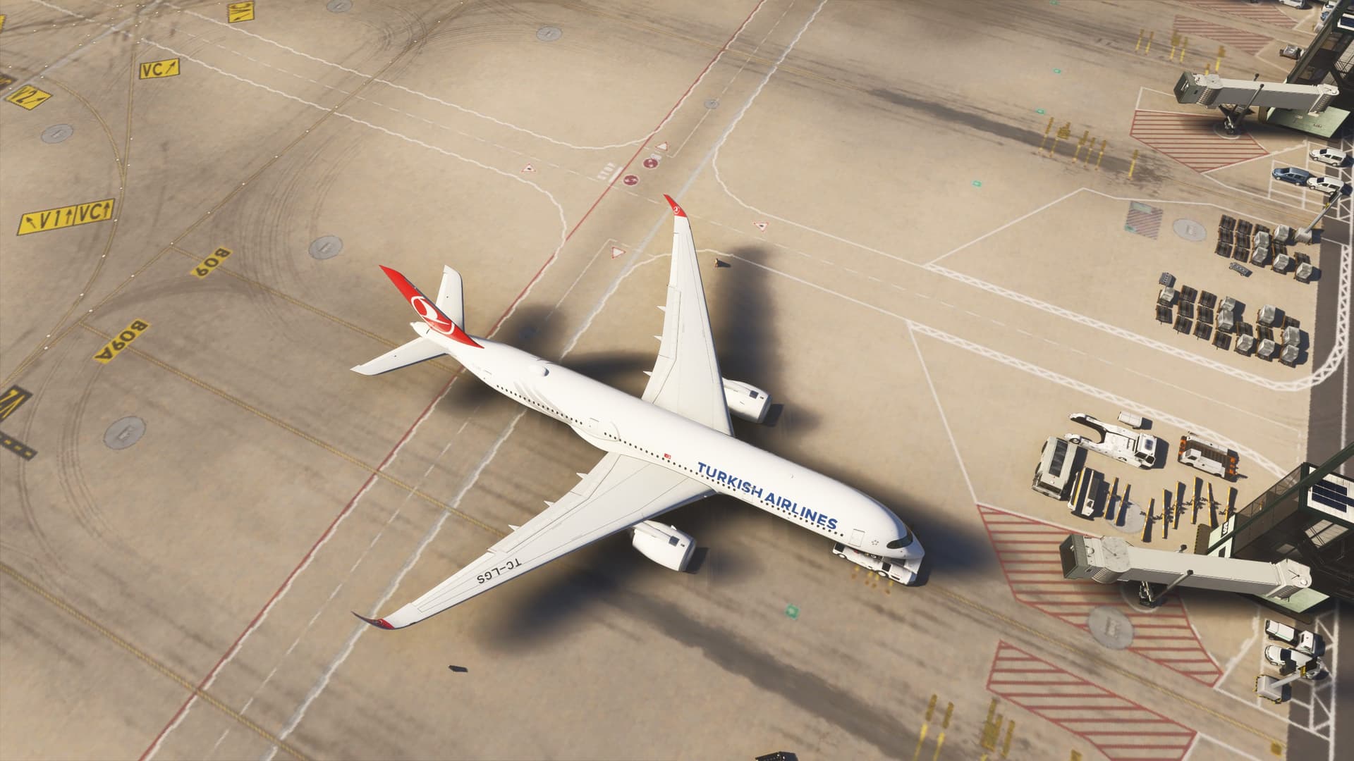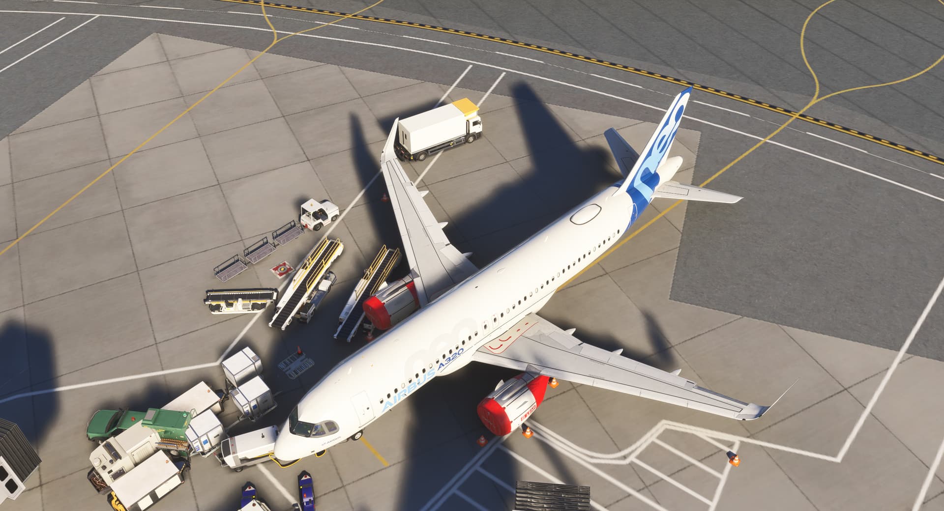 Shadow resolution is low and flickering, but this only seems to occur when viewed with the External View. The issue is not present when the same shadows in the same instance of the sim are viewed through the cockpit windows, outside in walkaround mode, or from the drone cameras. Additionally, the player’s aircraft shadow resolution seems to improve when Raytraced Shadows is turned on, but other aircraft along with buildings and vehicles still have low-res/flickering shadows.