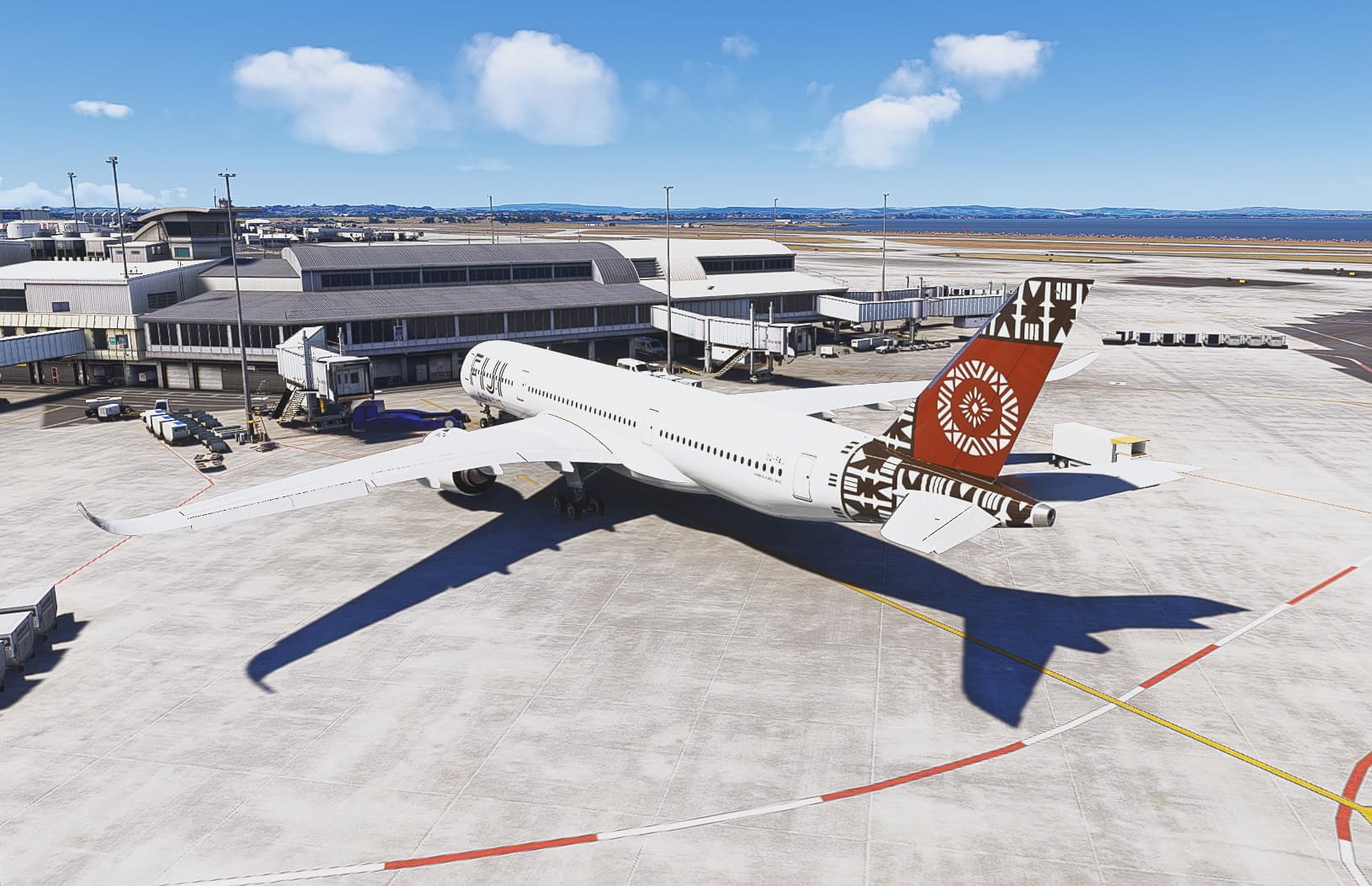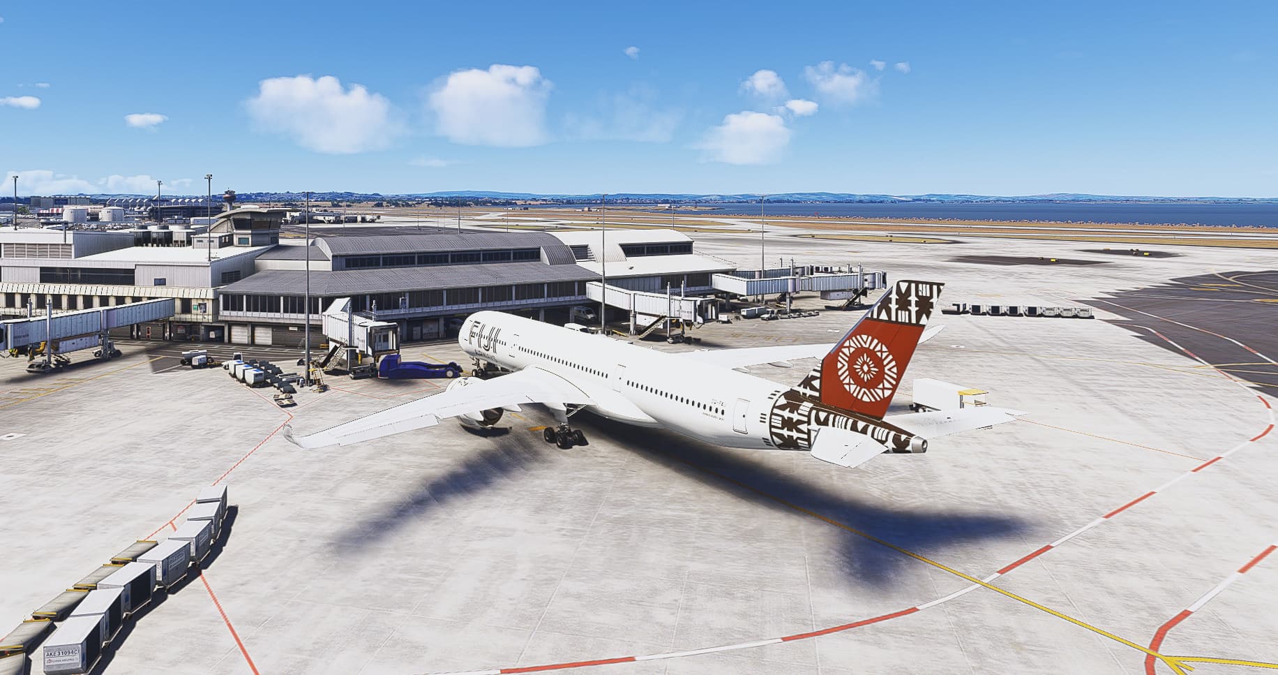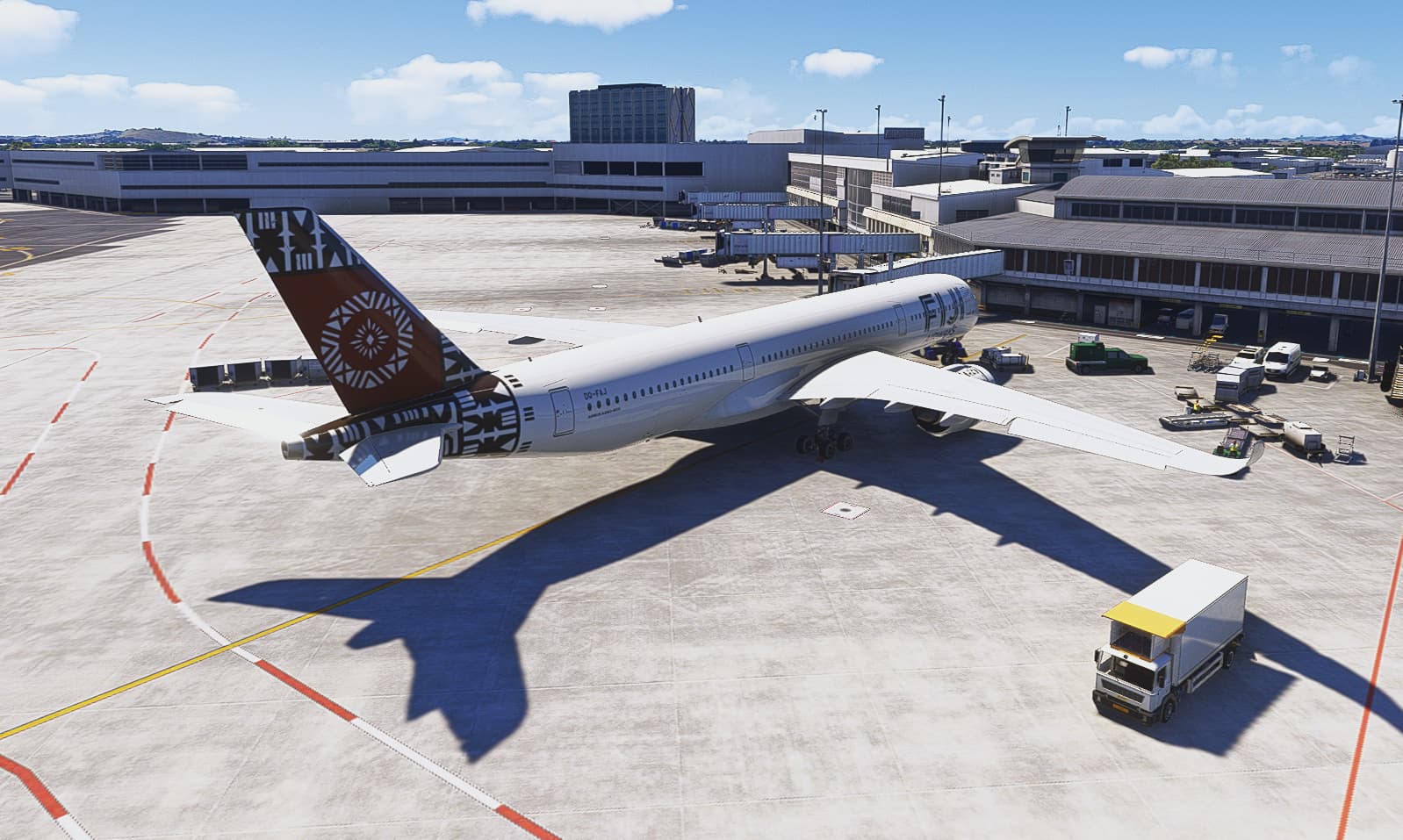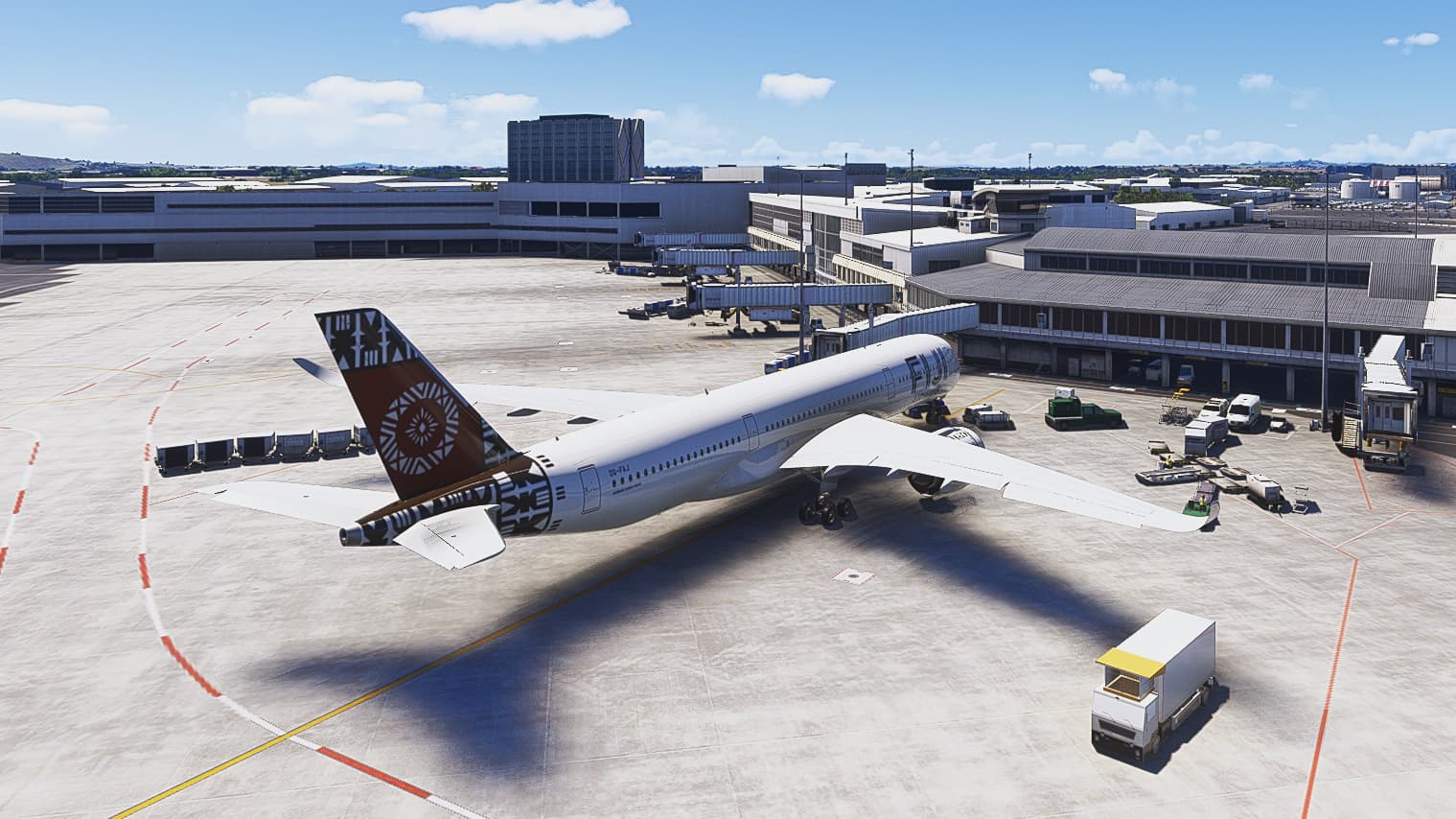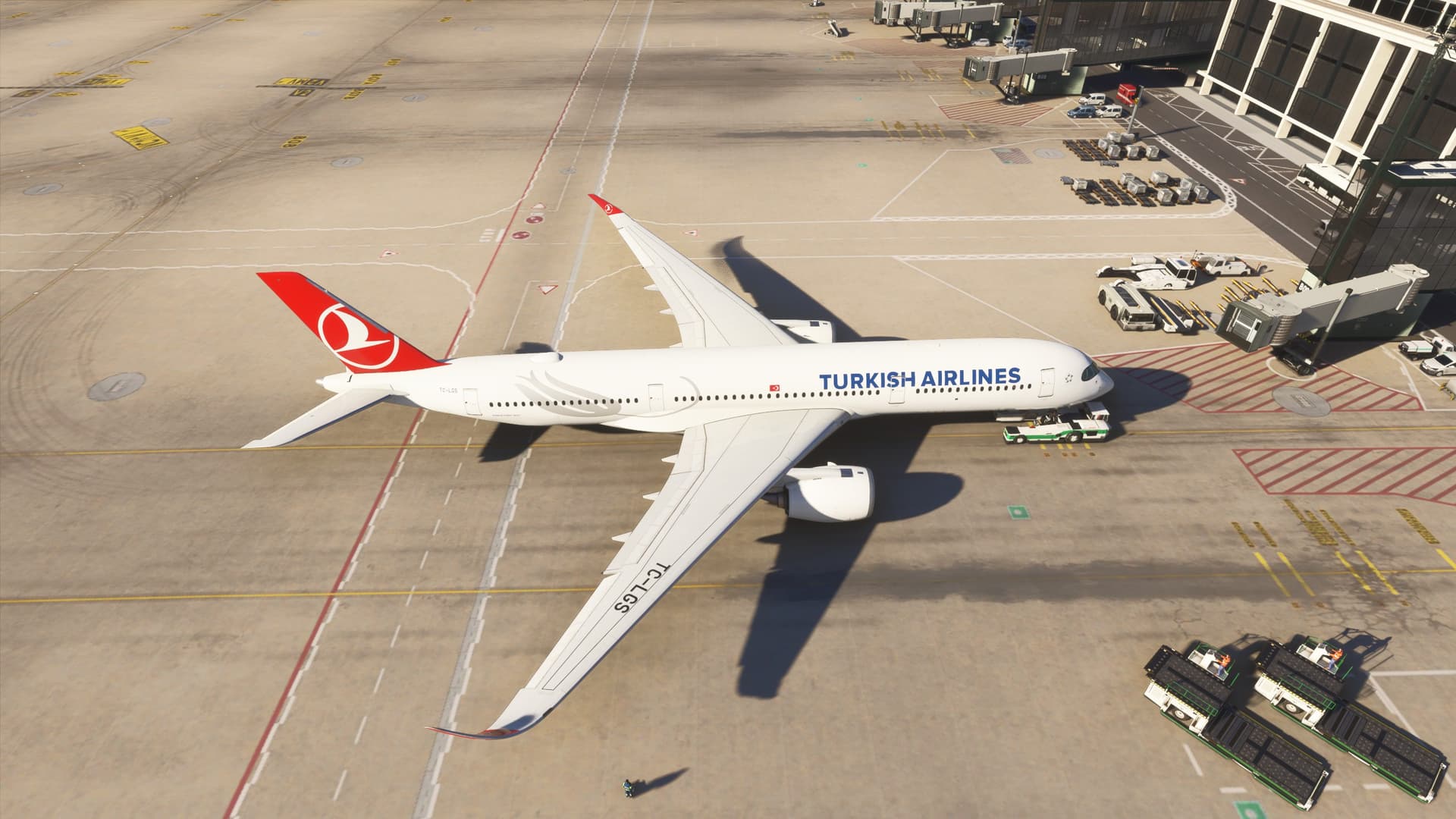 Shadow resolution is low and flickering, but this only seems to occur when viewed with the External View. The issue is not present when the same shadows in the same instance of the sim are viewed through the cockpit windows, outside in walkaround mode, or from the drone cameras. Additionally, the player’s aircraft shadow resolution seems to improve when Raytraced Shadows is turned on, but other aircraft along with buildings and vehicles still have low-res/flickering shadows.