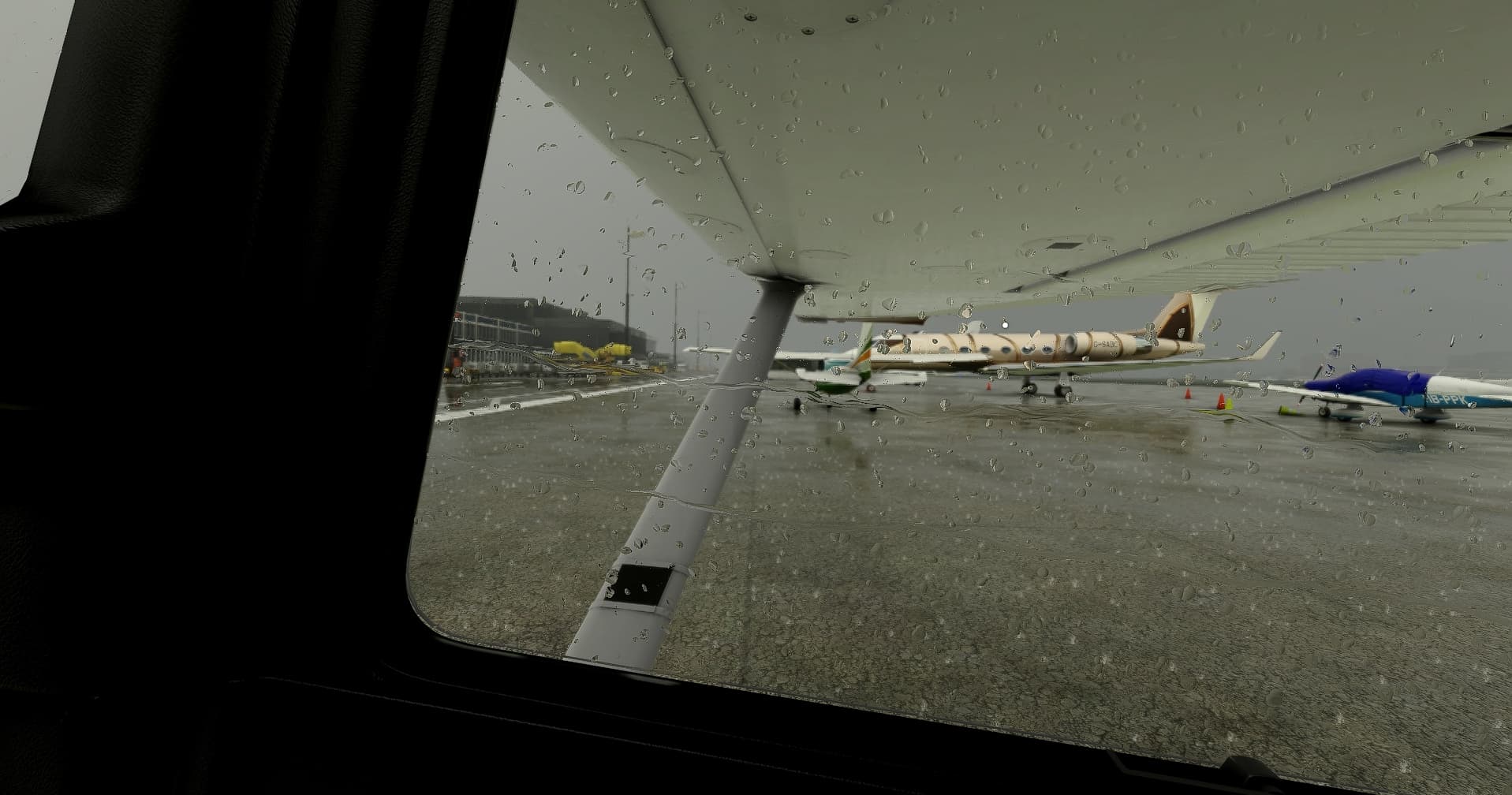 Also, I noticed when I’m on the runway in rainy weather, I do see raindrops falling around my aircraft, but they fall in a weird “pause, drop” way and not consistently or continuously. What’s going on then?