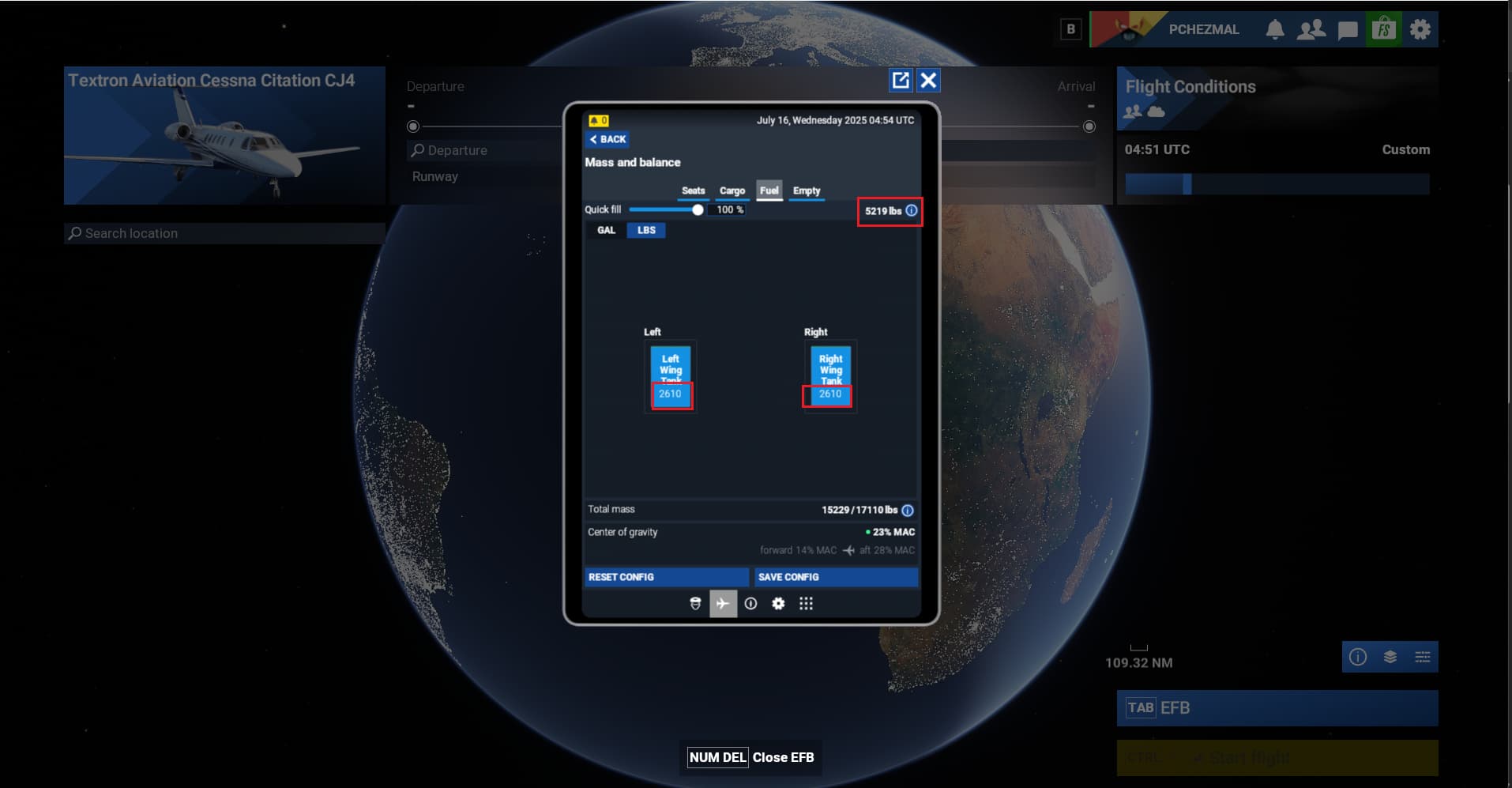 Except, in Microsoft Flight “Simulator,” it’s a mere 5219 lbs.