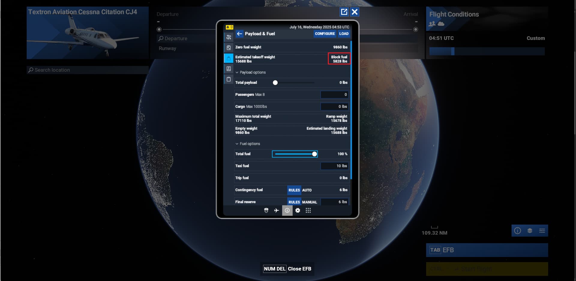 Fuel capacity, 5828 lbs. Citation CJ4 Gen3