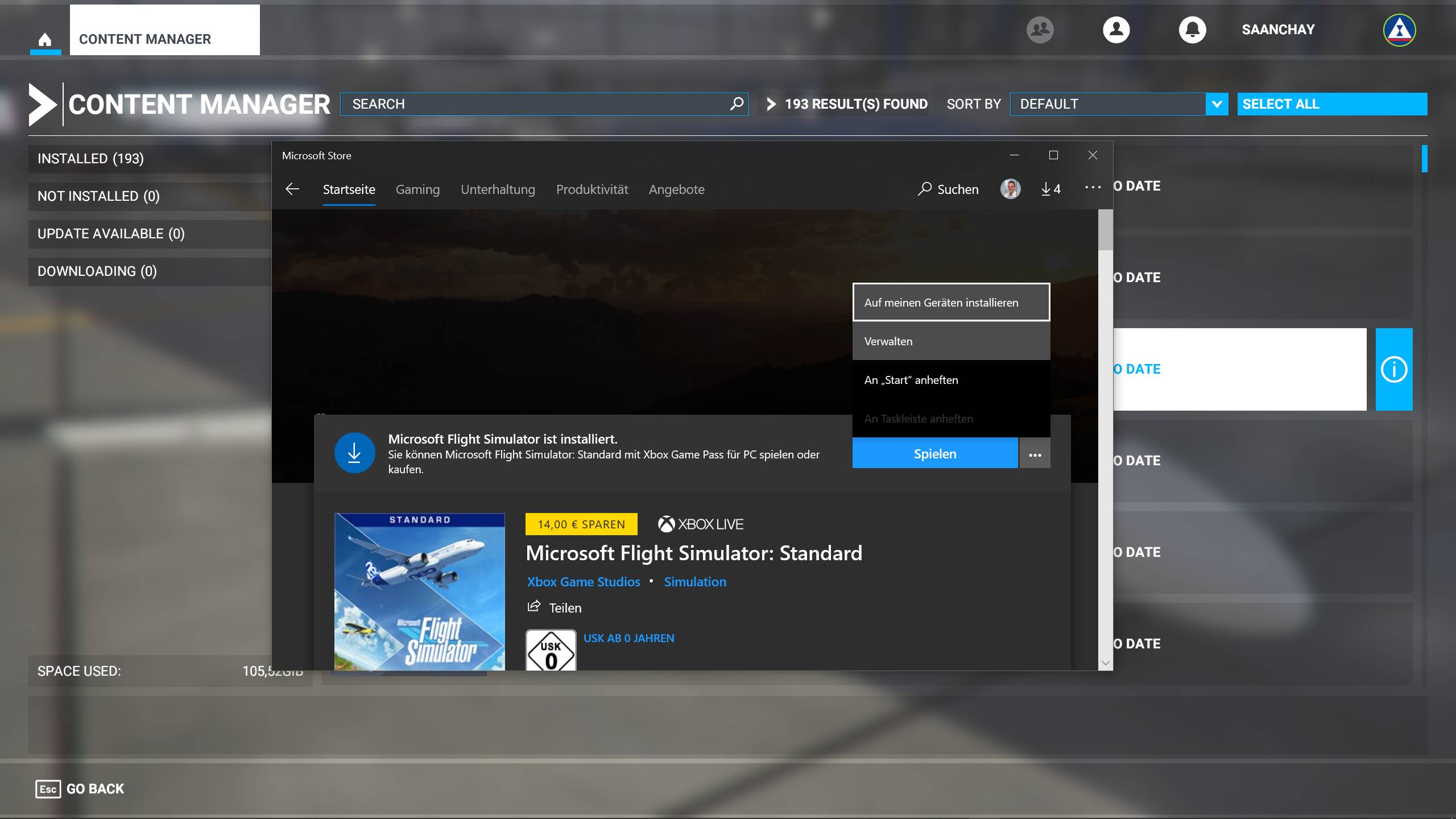 In anyway, MSFS is not showing in that menus. The whole shop menus where it shows installed store apps etc doesnt have any MSFS entry, thats why i wonder so much.