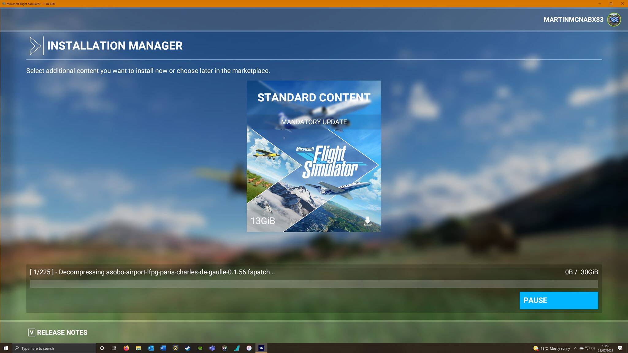 On 27/7/21 at 16:00 BST I began to download sim update 5. After downloading the first 10Gb of content the update stopped on “Decompressing Asobo-airport-lfpg-paris-charles-de-gaulle-0.1.56.fspatch”. (See picture).