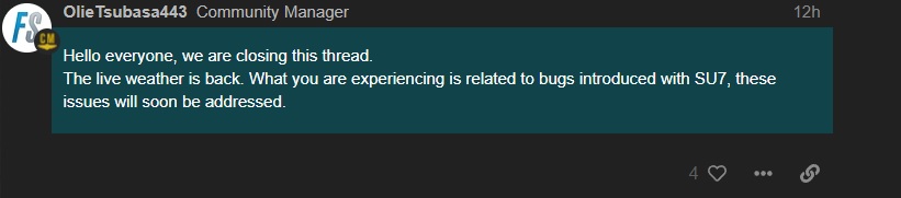 It’s as vague though as everything always is with MSFS, not sure exactly what ‘these issues will soon be addressed’ actually means.