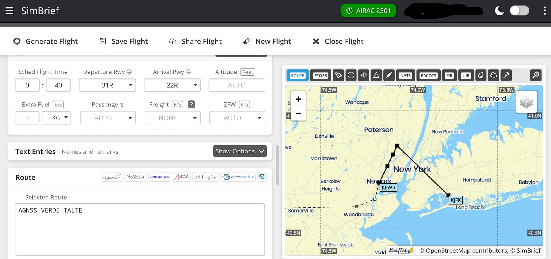 The flight does not go to KEWR runway 22R as defined in the Simbrief Planner.