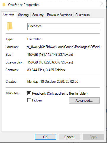 Here I have 150GB in LocalCache\Packages\Official ![]()
