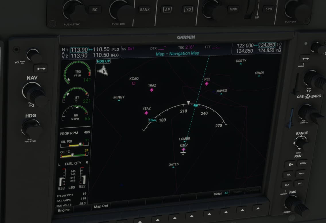 Question for you guys.. I seem to have lost my blue dotted line heading indicator on the MFD in the Kodi. I could have sworn it was there before. For example here it is in the Caravan, it only shows up while turning the heading bug and then disappears a few seconds later.
