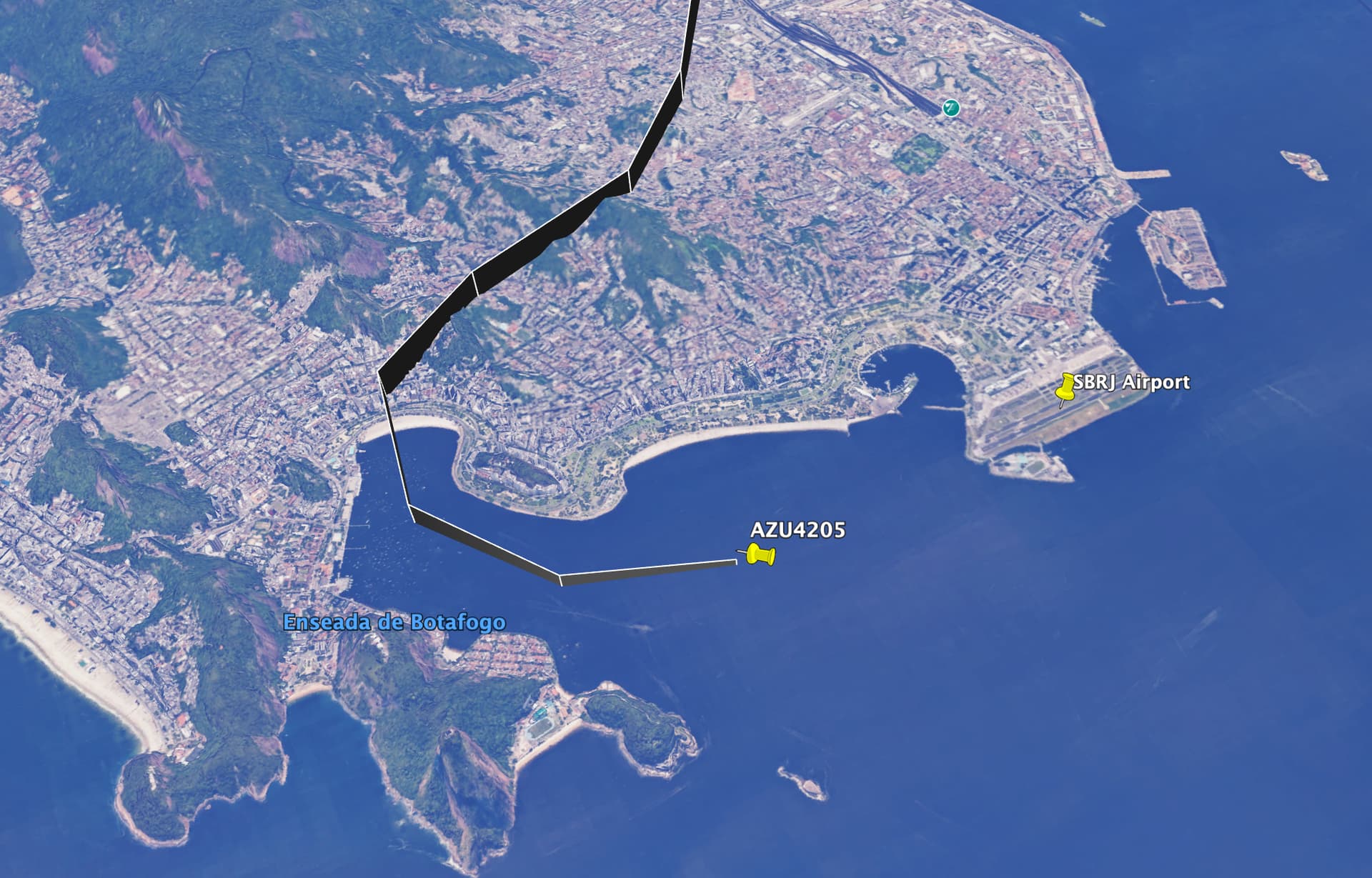 Sky Dolly comes with a set of default („system“) locations, among them a challenging approach to Santos Dumont, Rio de Janeiro, based on real-world flight Azul Brazilian Airlines 4205 on July 25 2022.